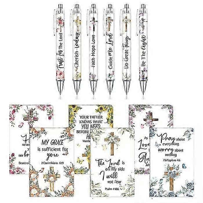 Christian Bulk Gifts For Women Include 6 Mini Bible Verse Notepads, 6 Scripture Ballpoint Pens, Cute Religious Notebooks Gifts Prizes Party Favors