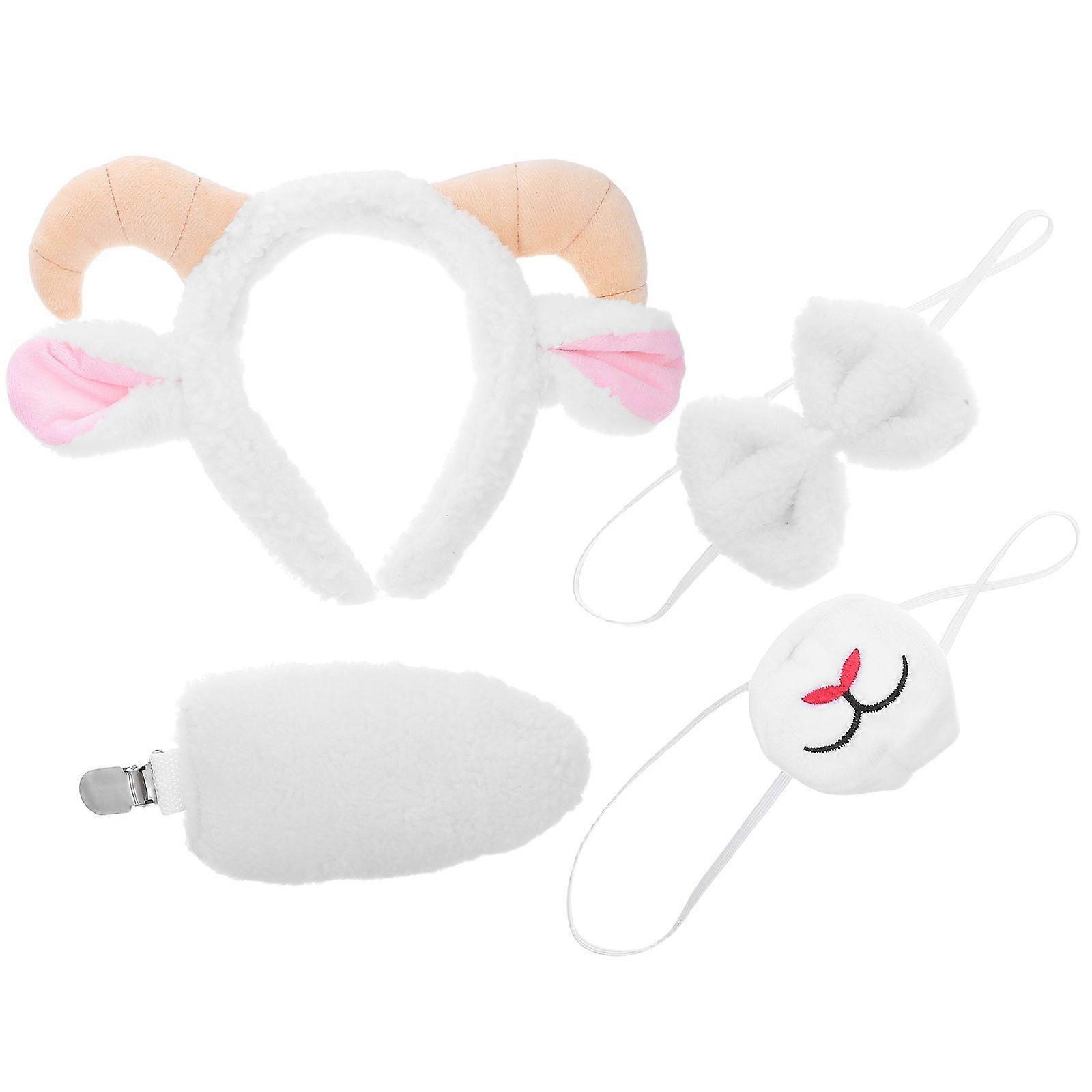 4pcs Halloween Goat Costume Set Lamb Ear Headband Nose Mask Tail Accessory For Woman Kids Adult Animal Cosplay Dress Up Party