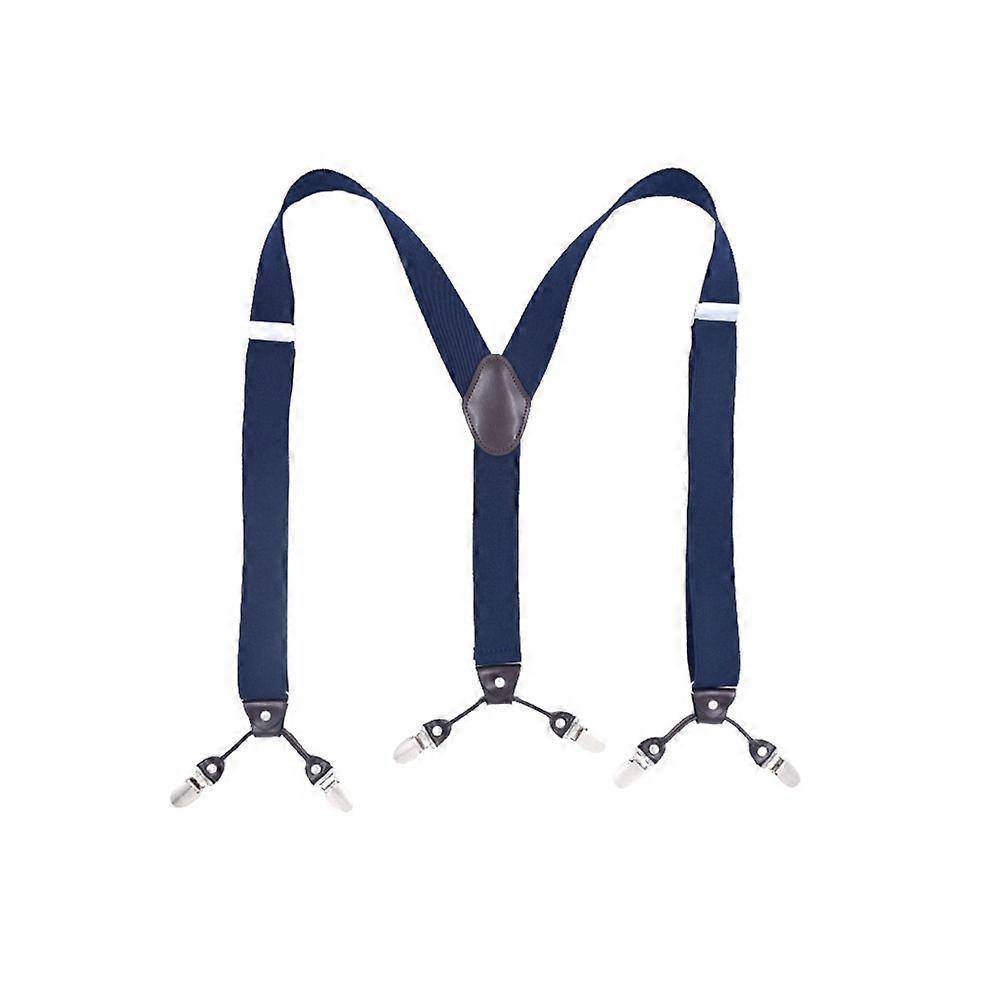 Elastic 6 Clips Suspender Fashionable Monochromatic Trousers Braces Suspender for Man (Navy)
