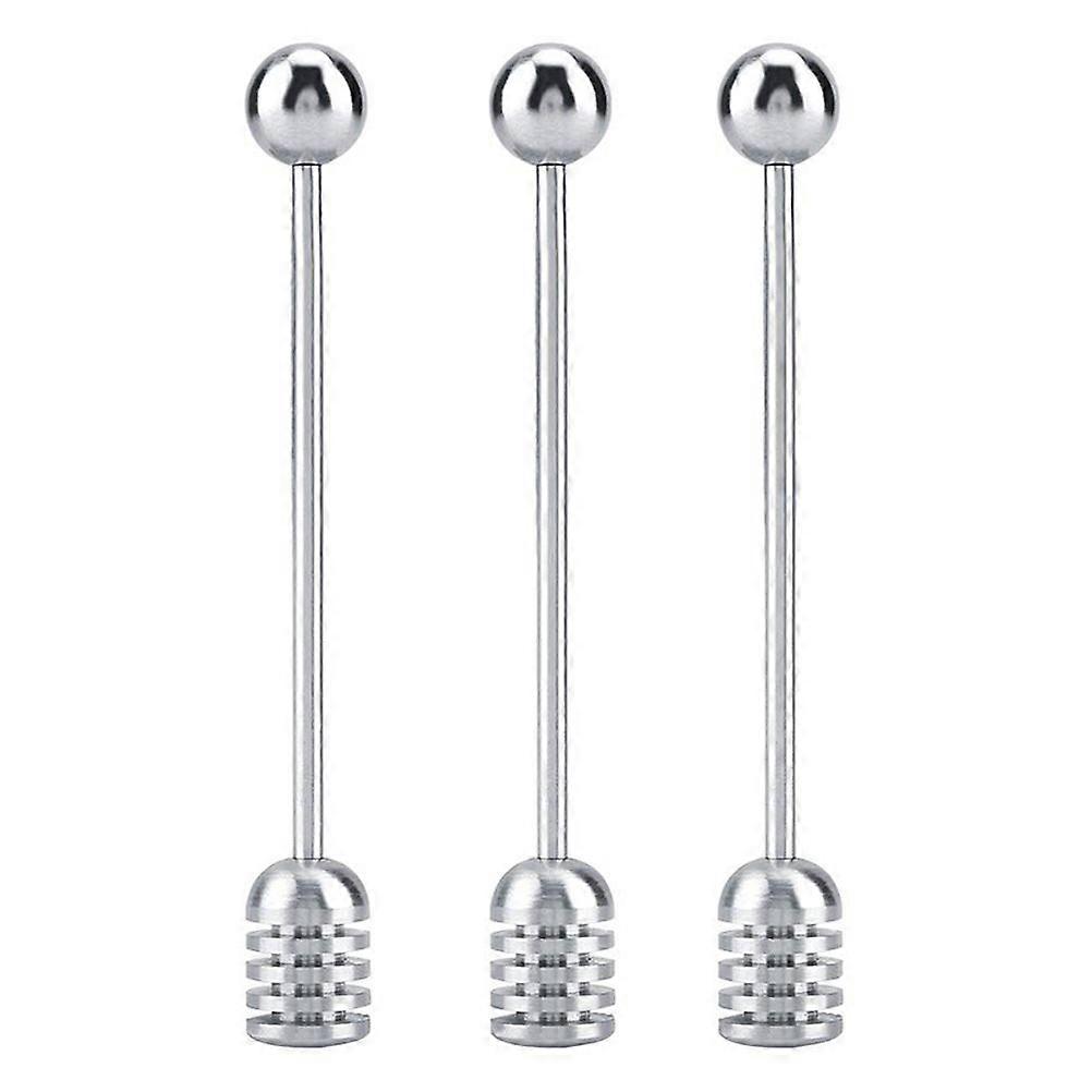 3pcs Stainless Steel Honey Dippers Straight Handle Stirring Stick Stirrer with Round Bead