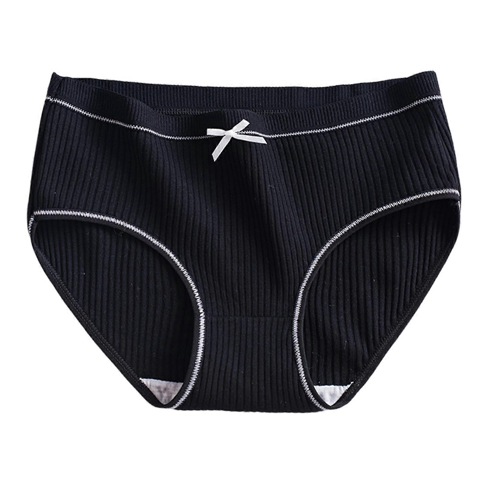 Women Panties Thread Bow Decor Mid Waist Elastic Cotton Underpants Seamless Max Comfort Daily Sport