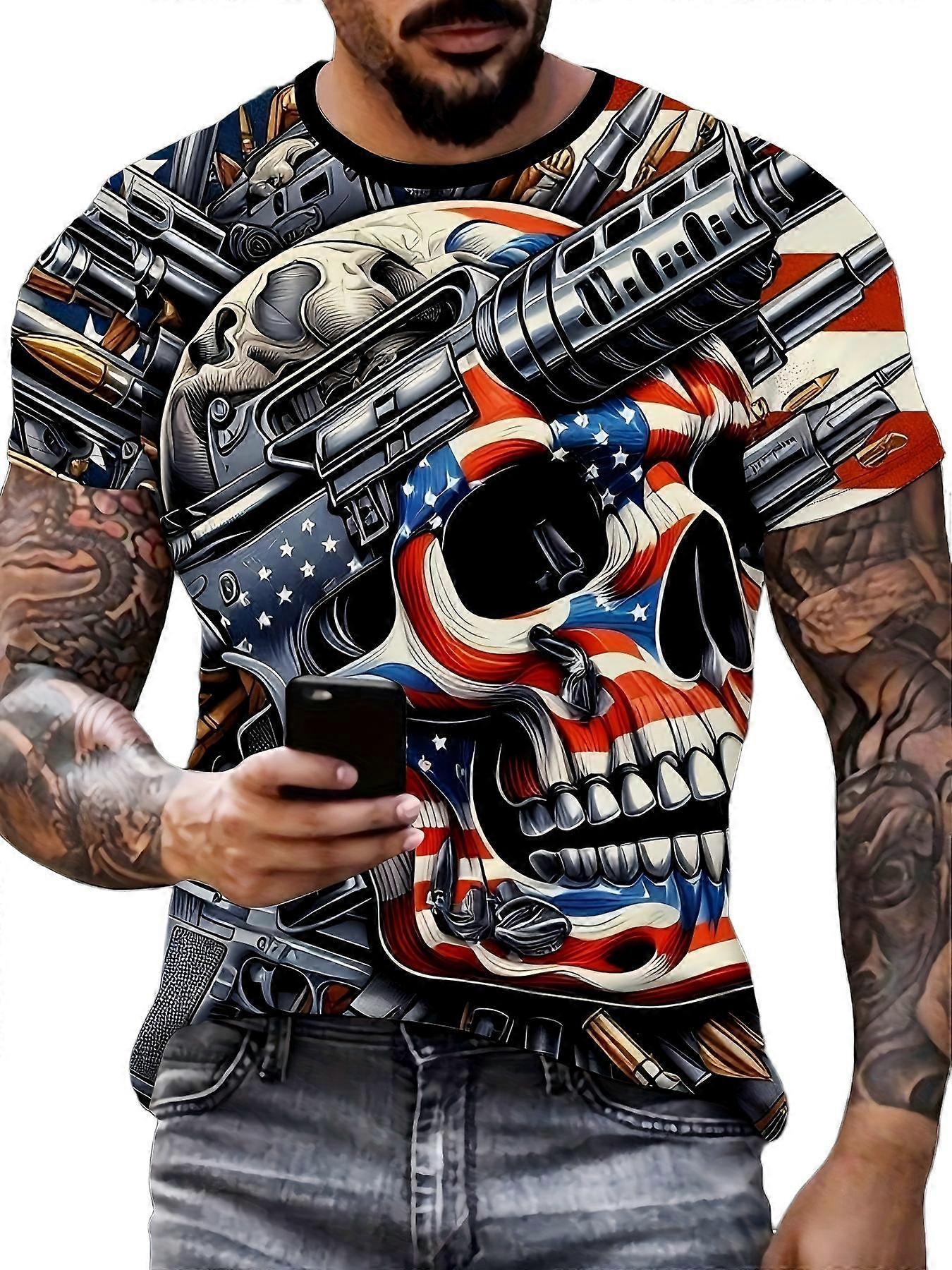 Men’s Bold Graphic T Shirt American Flag Skull Gun 3D Print Casual Streetwear Tee