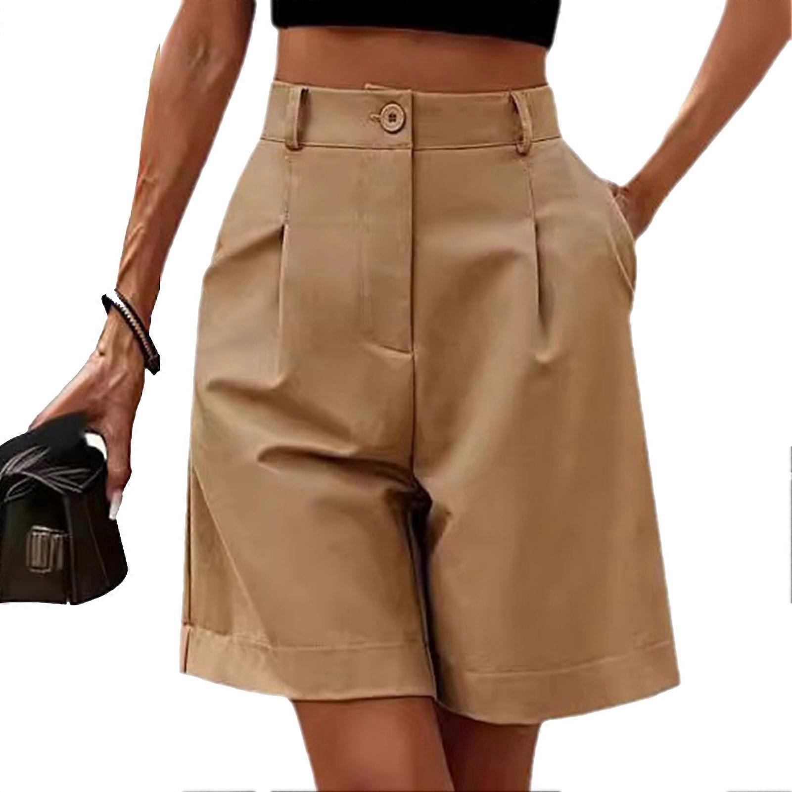 Women's Summer High Waist Short Loose Fit Knee-Length Wide Leg Shorts with Pockets Casual Business