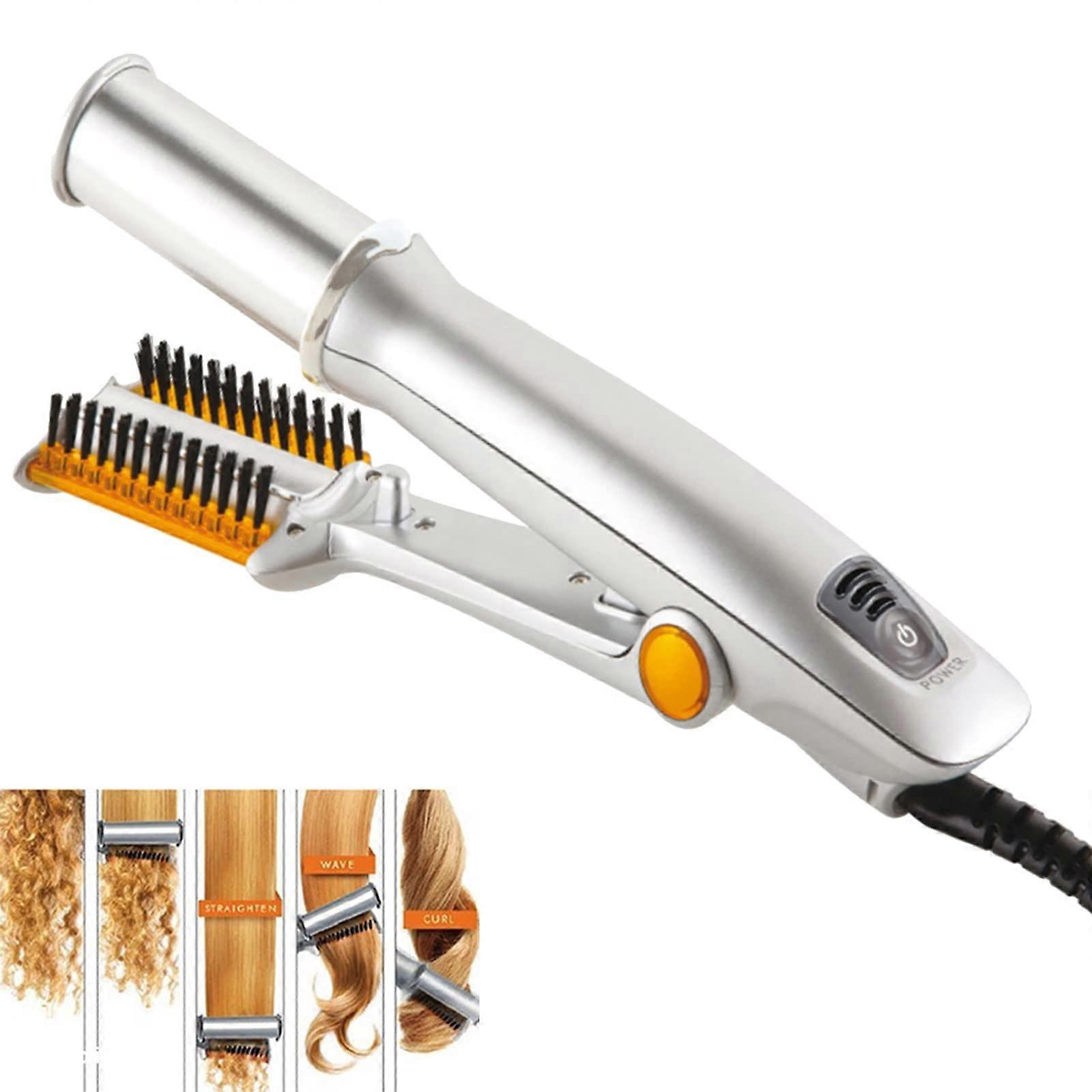 2 in 1 Hair Straightener and Curler with Tourmaline Ceramic Rotating Barrel, Ionic Frizz Control, 3 Heat Settings, 1.25 Inch