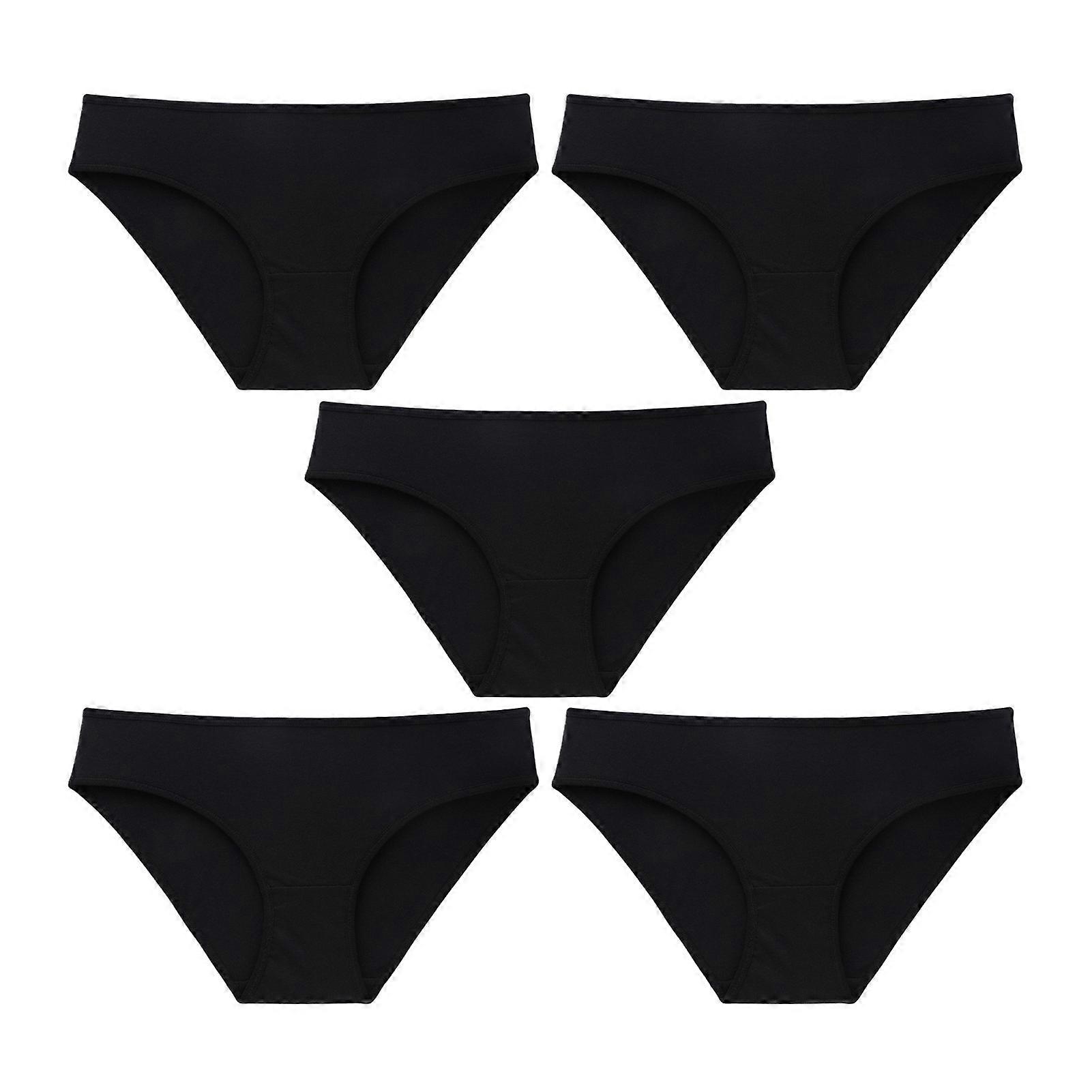 5Pcs Women Briefs Mid-rise Solid Color Breathable Underwear Double-Layer Cotton Crotch Panties Daily
