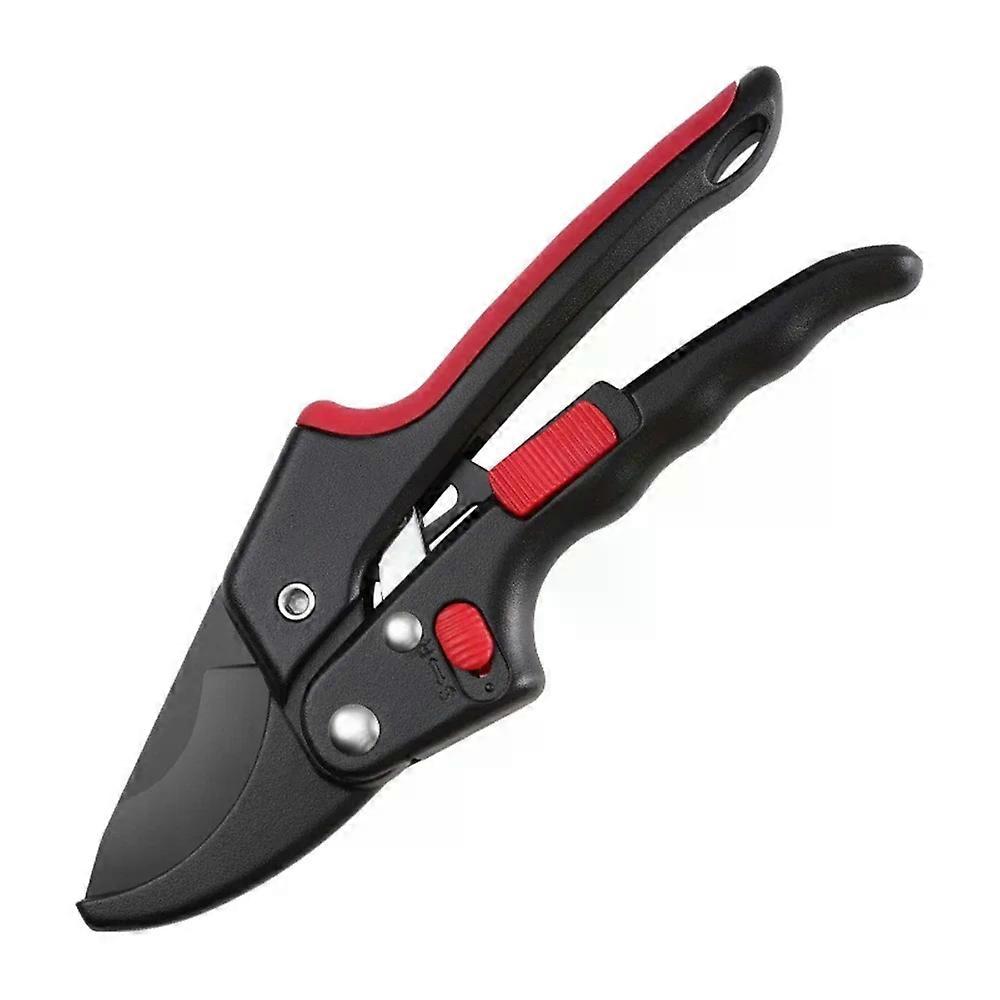 Features: 1.Pruning shear with the imum cutting capacity of 26mm diameter twigs or branches. 2.The ratchet function can be switched, which saves more effort in pruning 3.Safe lock button to close and open the scissor pruning easily and conveniently. 4.Ergonomic designed handle and build in spring make it easy to operate with little effort and can use it for a long time without fatigue. 5.Made of high carbon steel, this pruning shear is not easy to wear or rust and it is very durable in use. 6.Gardening tools suitable for garden pruning, gathering grapes and citrus, and also great for cutting twigs, branches stems, shrubs, new growths and deadwood etc. Specifications: Material: High carbon steel Color: Black Total Length: Approx. 200mm / 7.87in Cutting Capacity: 26mm / 1.02in diameter twig branches Package Included: 1 x Pruning Shear