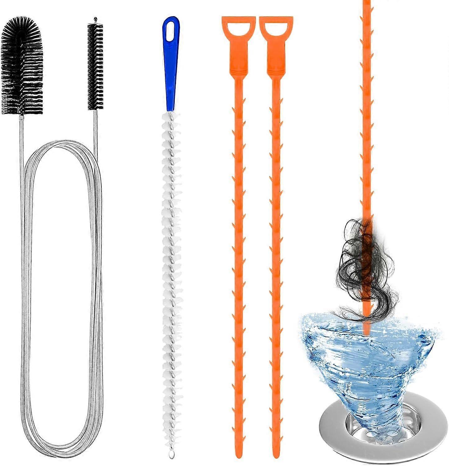 4-Piece Drain Cleaning Brush Set, Drain Unclogging Tool, Drain Cleaning Brush, Sink Unclogging Tool for Sewer Pipes, Washbasins, Bathtubs, and Kitchen