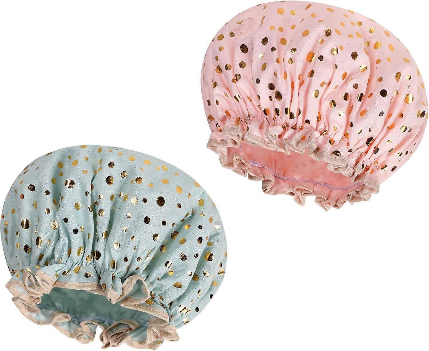 Shower Cap, 2 Pieces Waterproof Shower Cap, Reusable Bath Caps with Elastic Bands