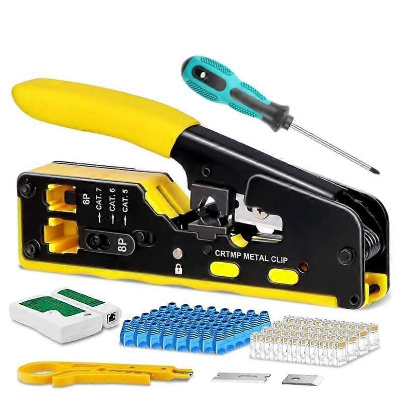 RJ45 Crimping Tool Kit for Network Connectors, RJ45 Crimping Tool Kit, RJ45 Network Plug Pass-Through Crimping Tool, Cutting Pliers