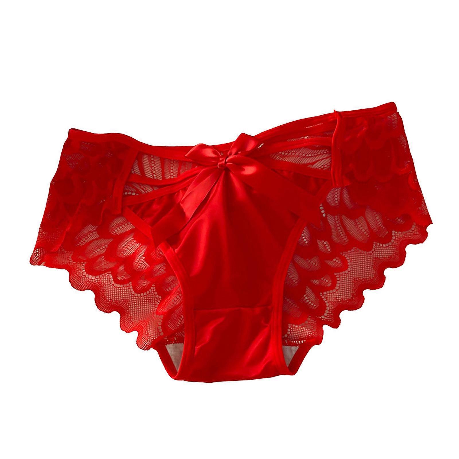 Women Sexy Lace Satin Panties Mid Waist Silky Underwear with Bow Lady Seamless Briefs Invisible