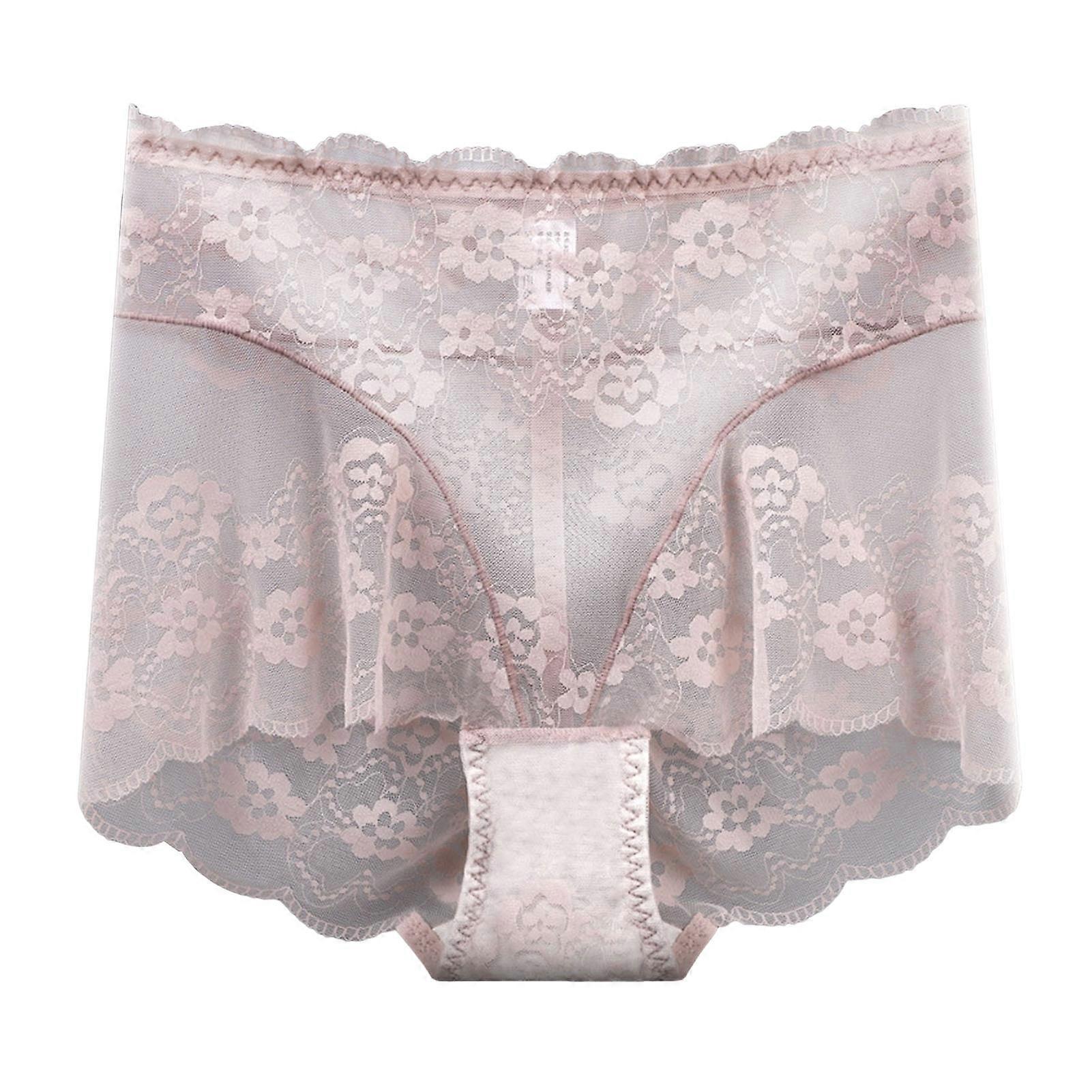 Women's Lace Trim Panties Sexy Mesh Sheer Briefs Hight Waist See Through Underpants Soft Stretch