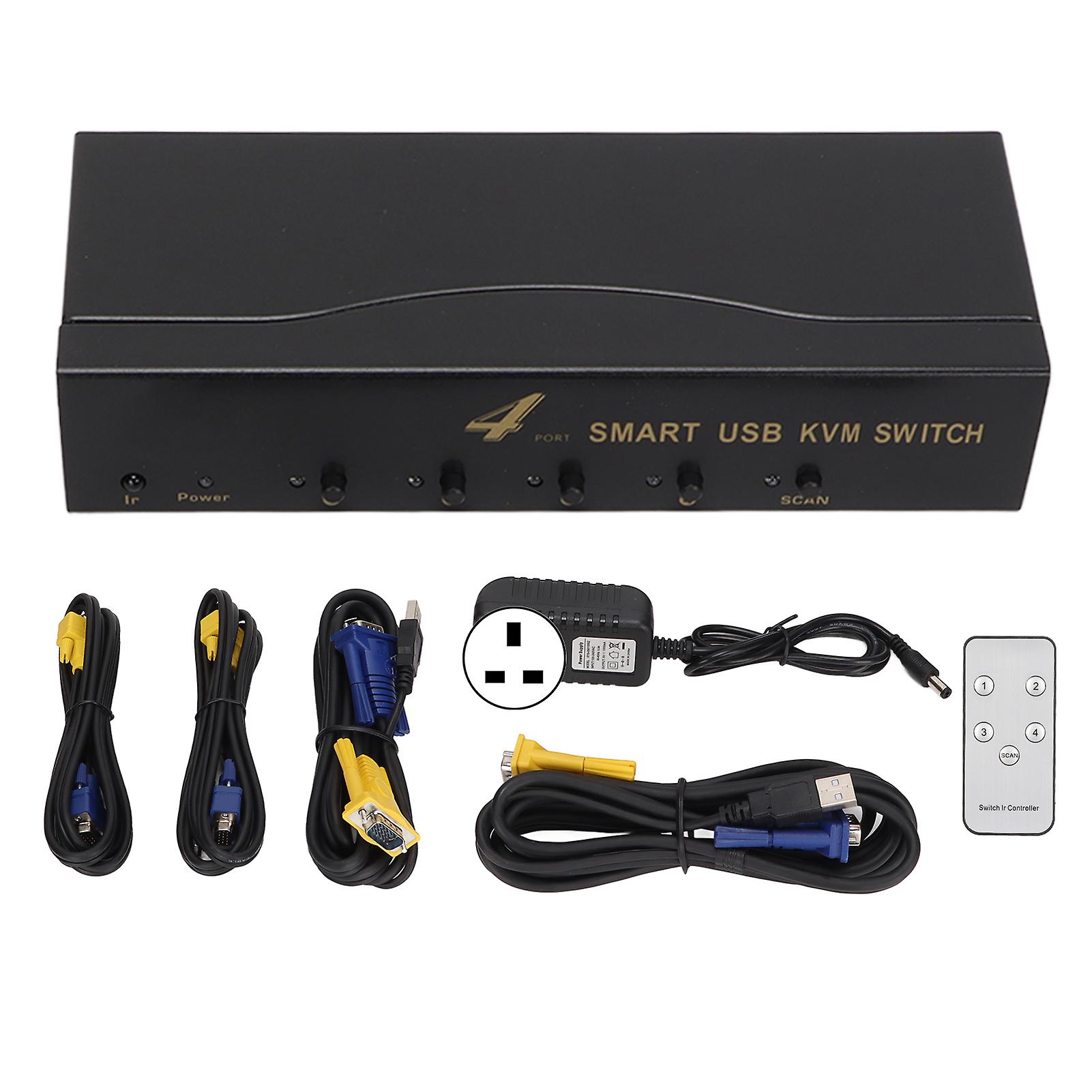 VGA KVM Switch 1920x1440 Resolution 4 USB Ports 2 Switching Modes UK Plug