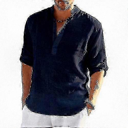 Men's Loose Fit Linen Shirt for Summer - Long Sleeve Casual Cotton Top for Various Ocns
