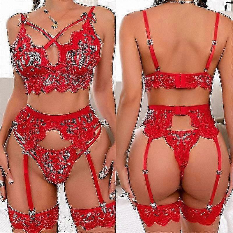Sexy See Through Lingerie Set for Women, 3-Piece Bra Panty Garter Belt Lingerie
