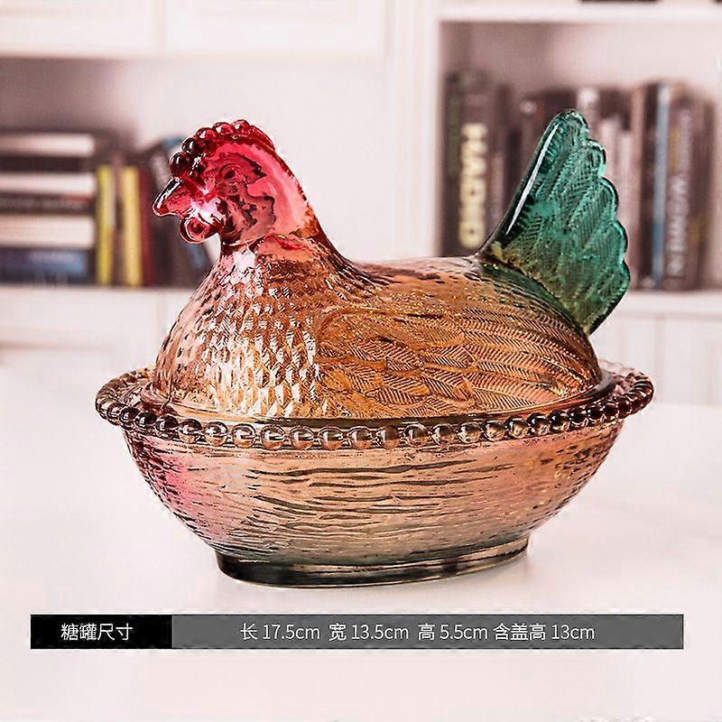 Crystal Glass Glazed Chicken Storage Jar Colorful Chicken-Shaped Candy/Sugar/Snack Jar | Decorative Crystal Glass Container | Stylish Kitchen & Table
