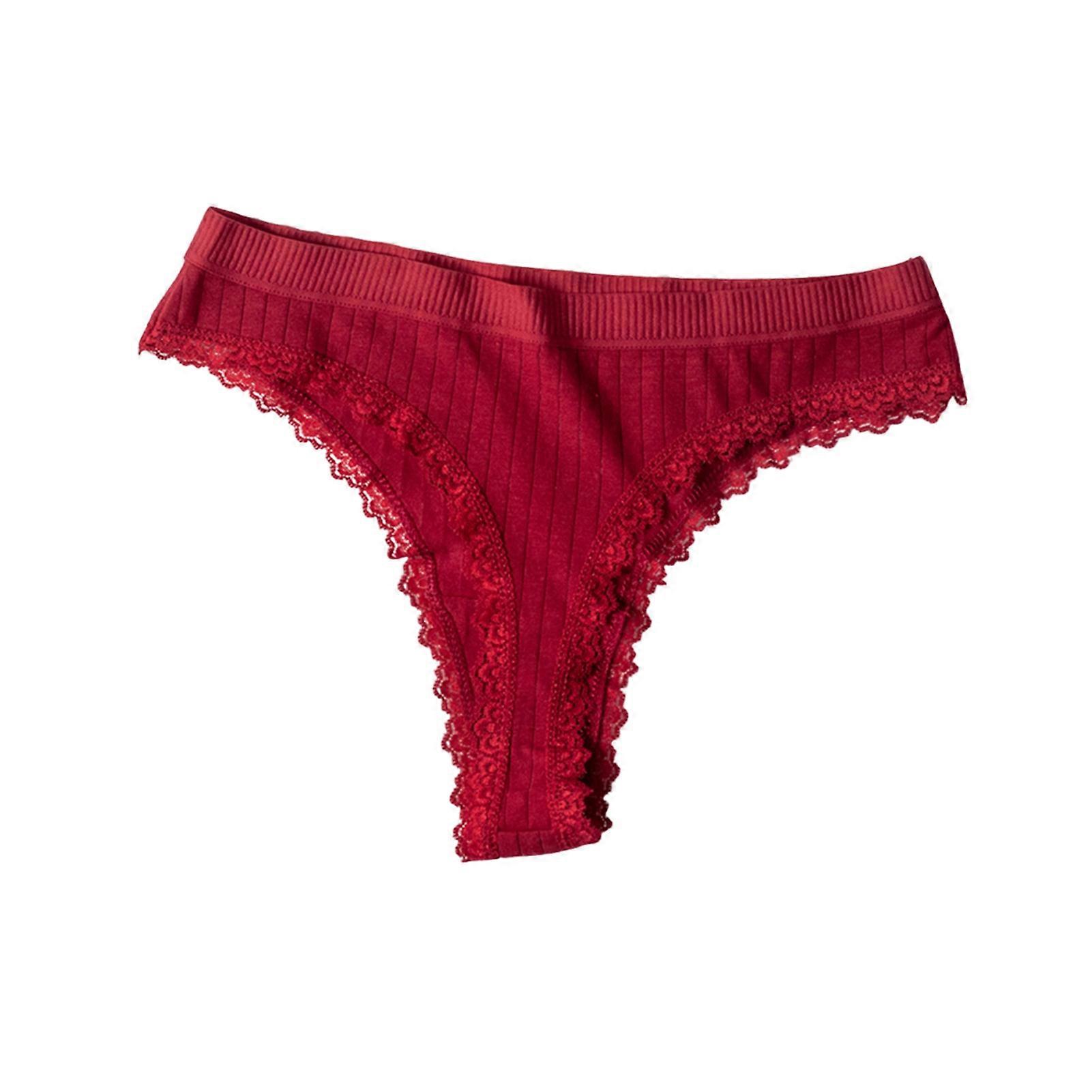 Women's Ribbed Cotton Underwear Lace Trim Low Waist Briefs Soft Stretchy Bikini Panties Seamless