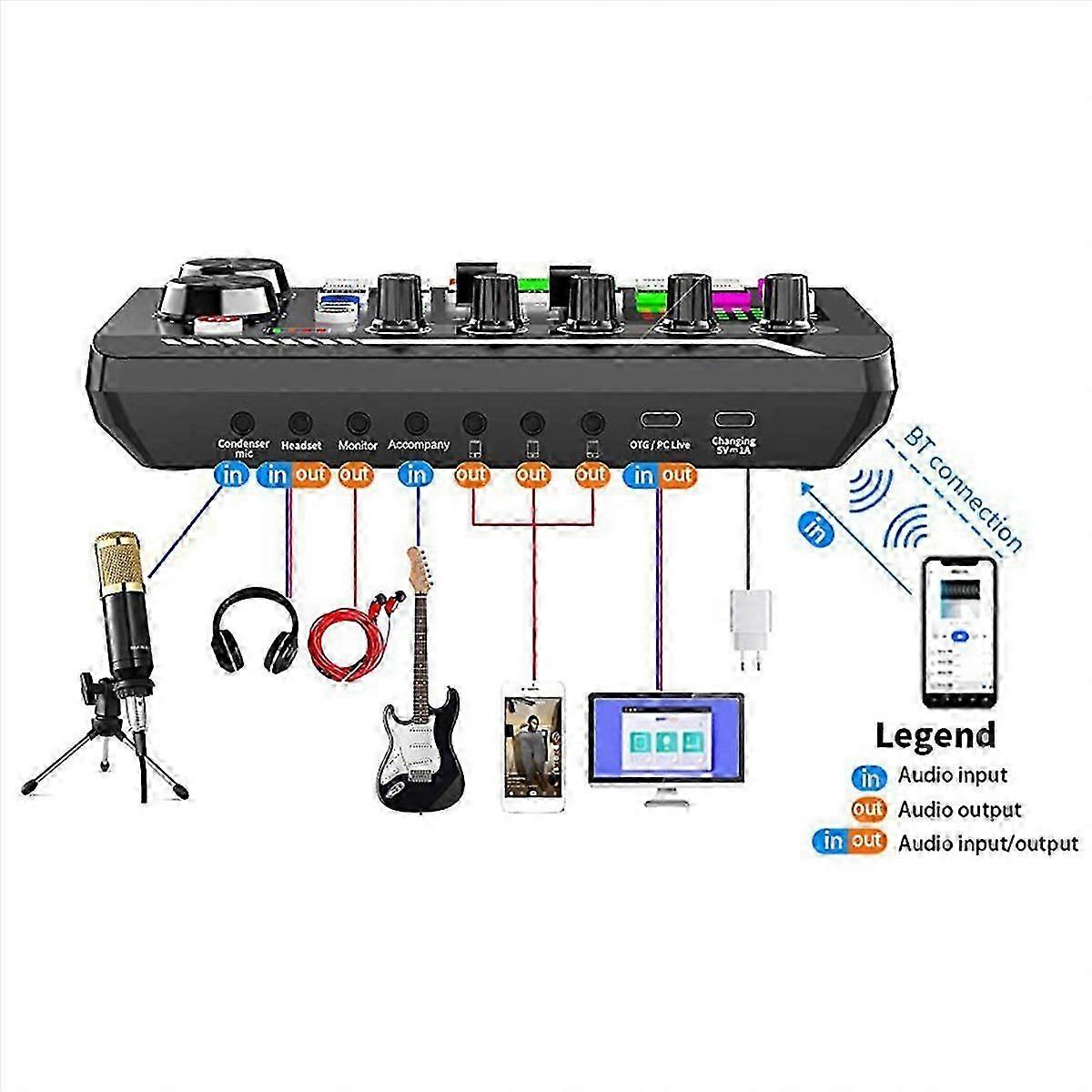 No need for adapterLive while chargingNo current sound warm-up atmosphere sound effectsenliven the atmosphere of your live broadcast room ,so that you are no longer embarrassed and cold-hearted during live broadcastsBluetooth compatibilitysupport Bluetooth compatible connection .you can transmit accompaniment musicthrough mobile phones / the shackles of wiresColor: As ShownMaterial: PCPackage Contents:2 x F998 BM800 Set Portable Sound Card KitOnly the above package content, other products are not included.Note: Light reflection and different displays may cause the color of the item in the picture a little different from the real thing. The measurement allowed error is +/- 1-3cm.
