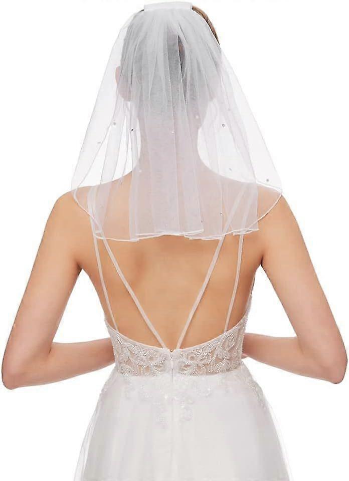 Bridal Wedding Veil Women's Short Vails with Rhinestone Tulle for Bachelorette