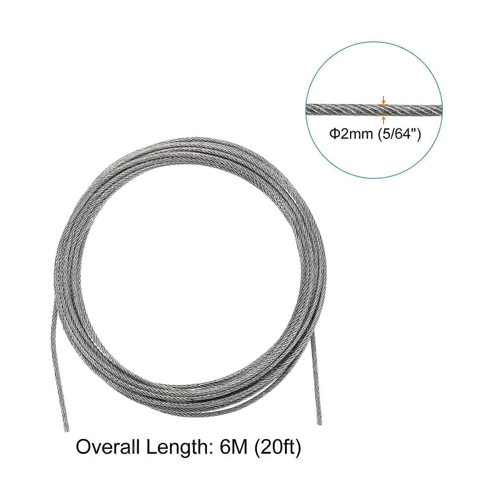 5/64" Wire Rope Kit, PVC Coated Stainless Steel Cable, 20ft