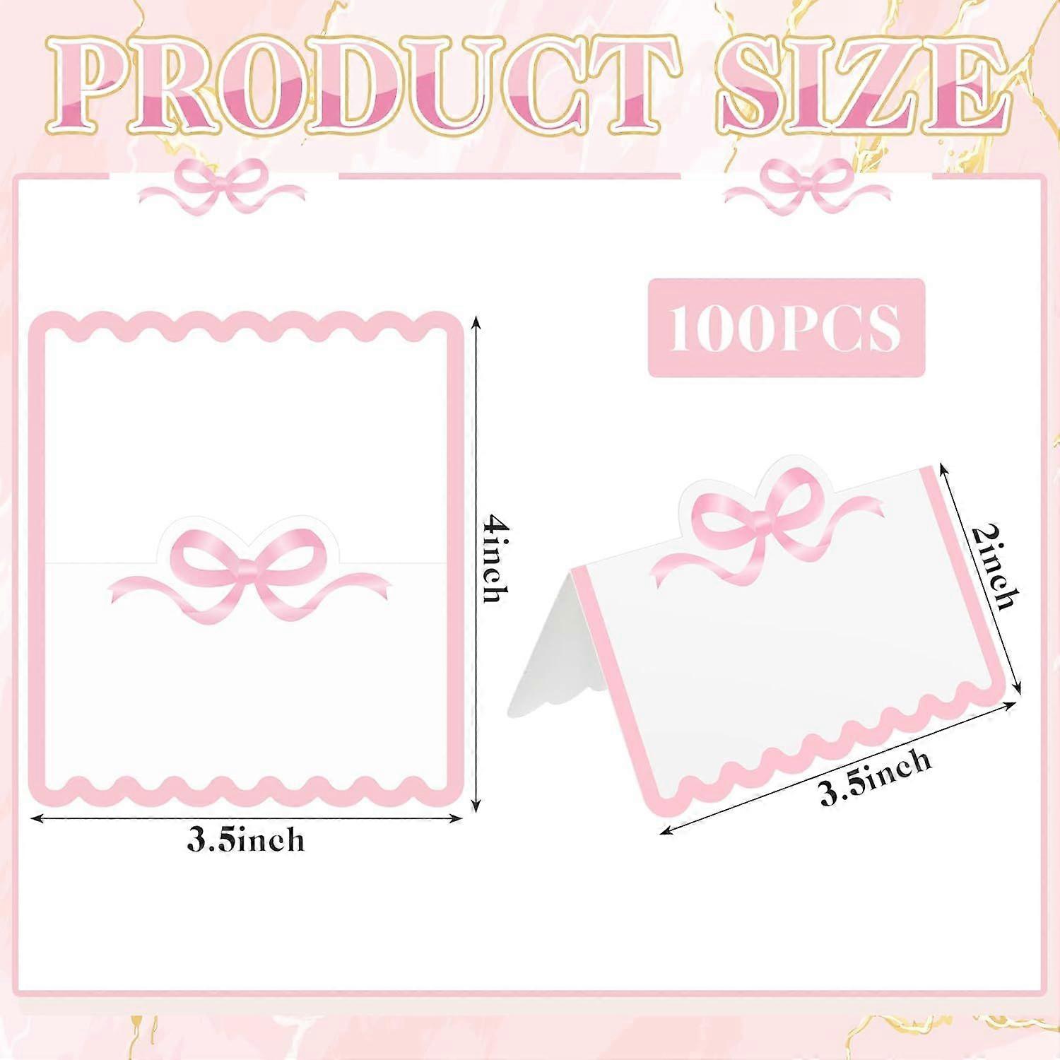 100 Pcs Bow Place Cards 2 x 3.5 Inch Cute Scalloped Knot Tent Name Cardstock