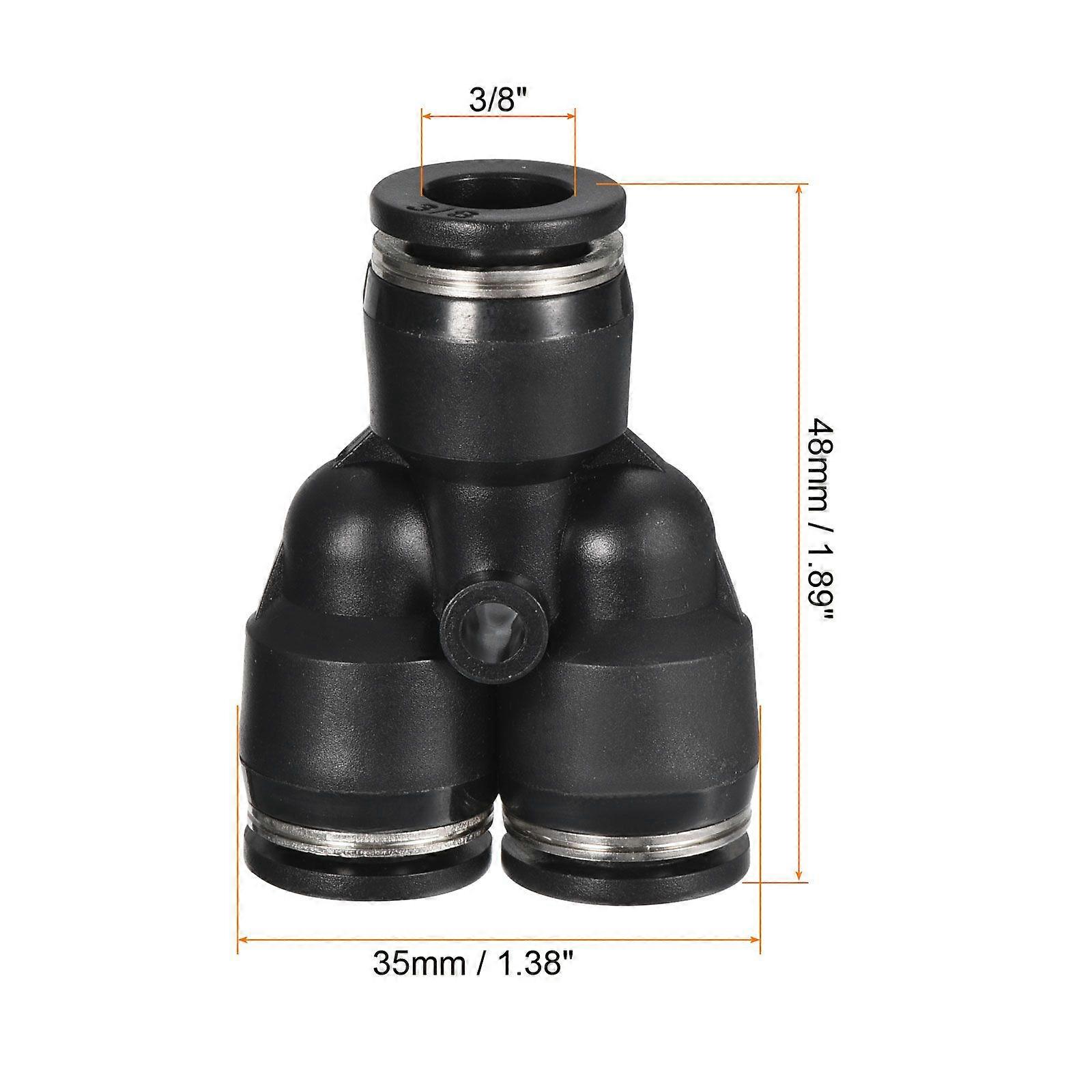 Y Shape 3/8" Push to Connect Pneumatic Air Line Fitting, Black 5 Pack