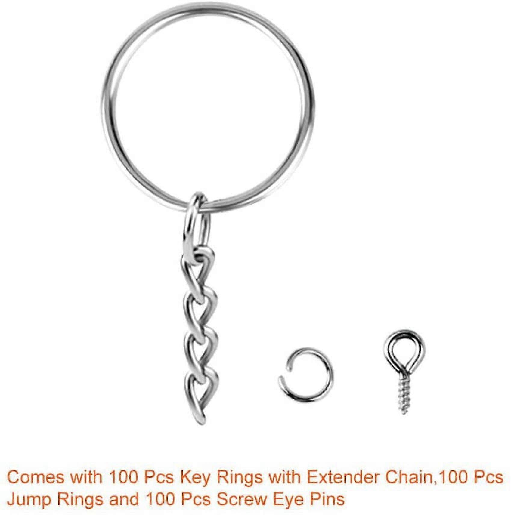 100Pcs Keychain Rings with Chain and 100 Pcs Screw Eye Pins Bulk for Crafts