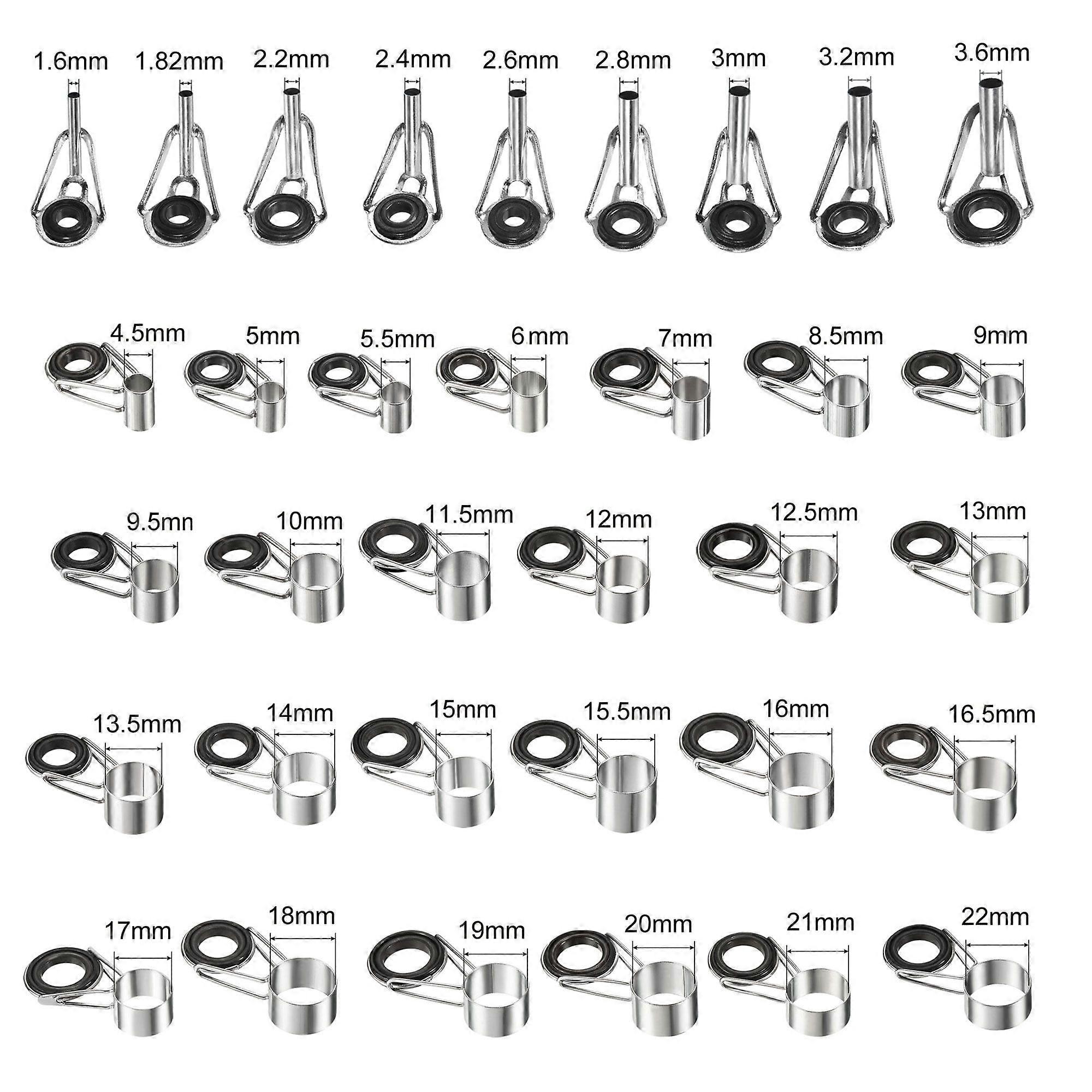 1.6-3.6mm Tube Dia Iron Fishing Rod Tips Repair Kit Set, 34 Pack