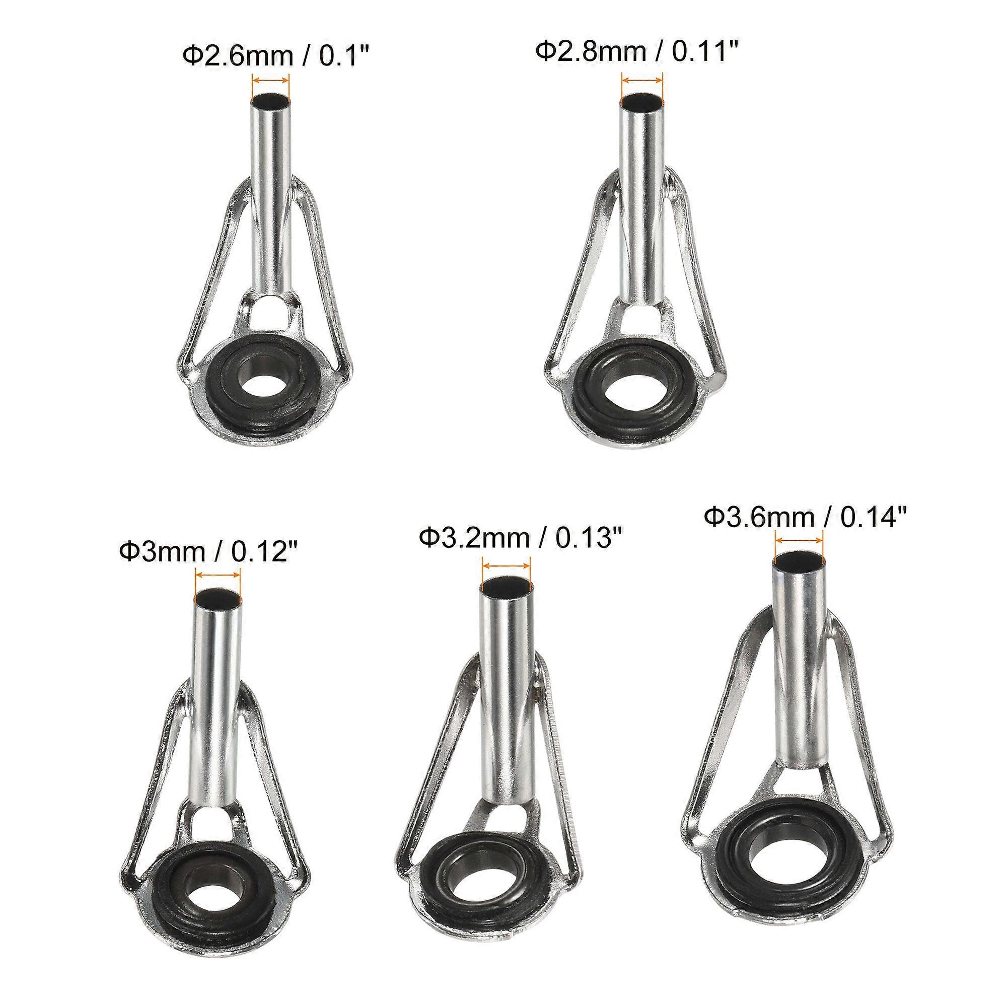 2.63.6mm Tube Dia Iron Fishing Rod Tips Repair Kit, Silver Tone 10 Pack