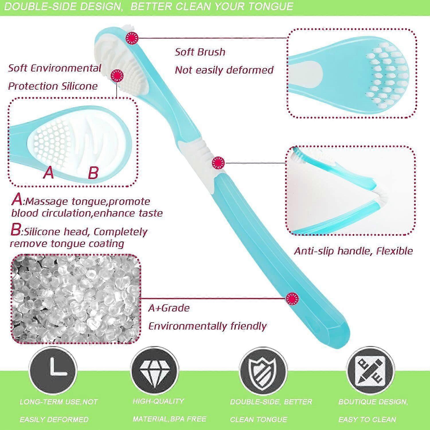 Tongue Scraper (4 Pack), Tongue Cleaners (2 pcs Stainless Steel, 2pcs 2-in-1 soft silicone