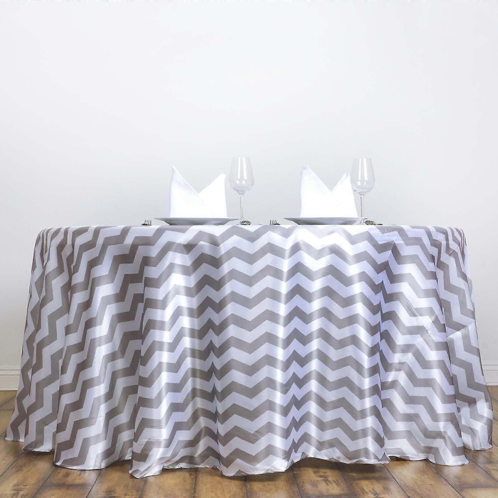 120" Round Satin Seamless Tablecover Chevron Stripes Tablecloths For Party Event