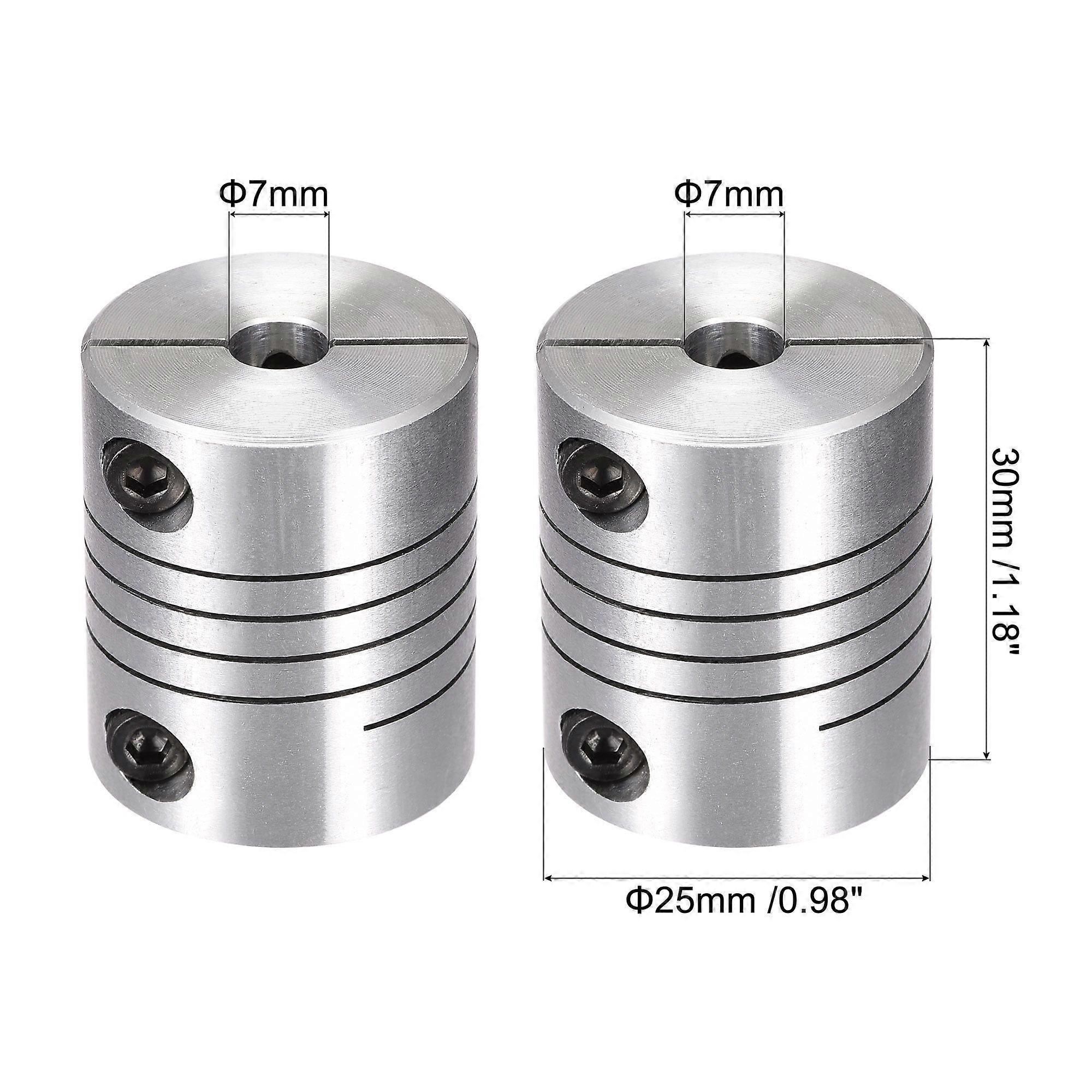 2PCS Motor Shaft 7mm to 7mm Helical Beam Coupler Coupling 25mm Dia 30mm Length