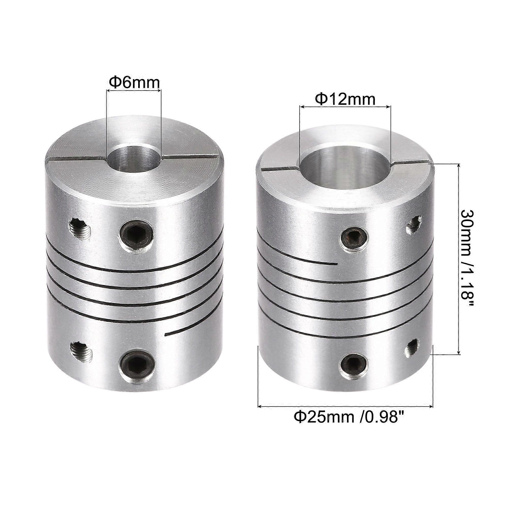 2PCS Motor Shaft 6mm to 12mm Helical Beam Coupler Coupling 25mm Dia 30mm Length
