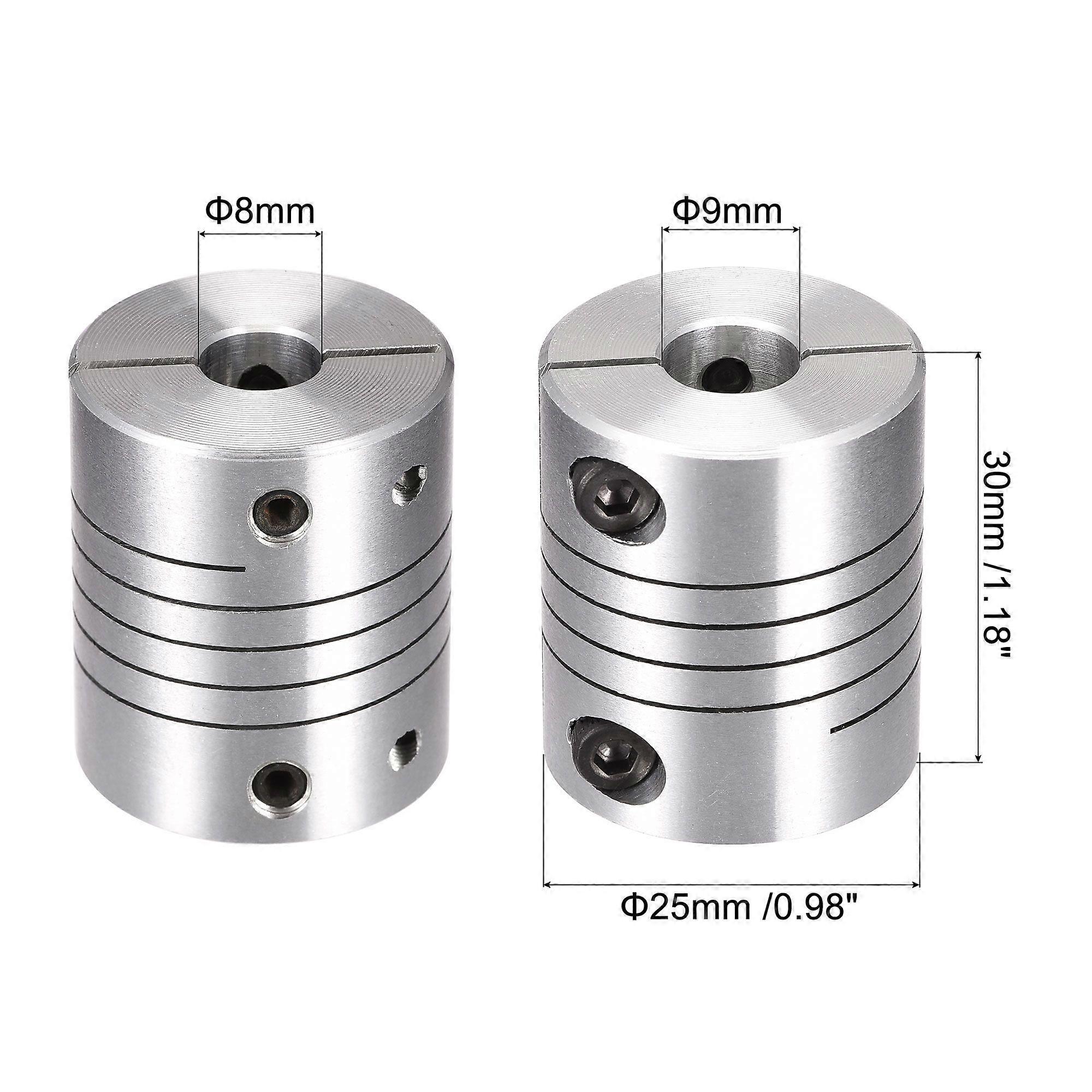 2PCS Motor Shaft 8mm to 9mm Helical Beam Coupler Coupling 25mm Dia 30mm Length