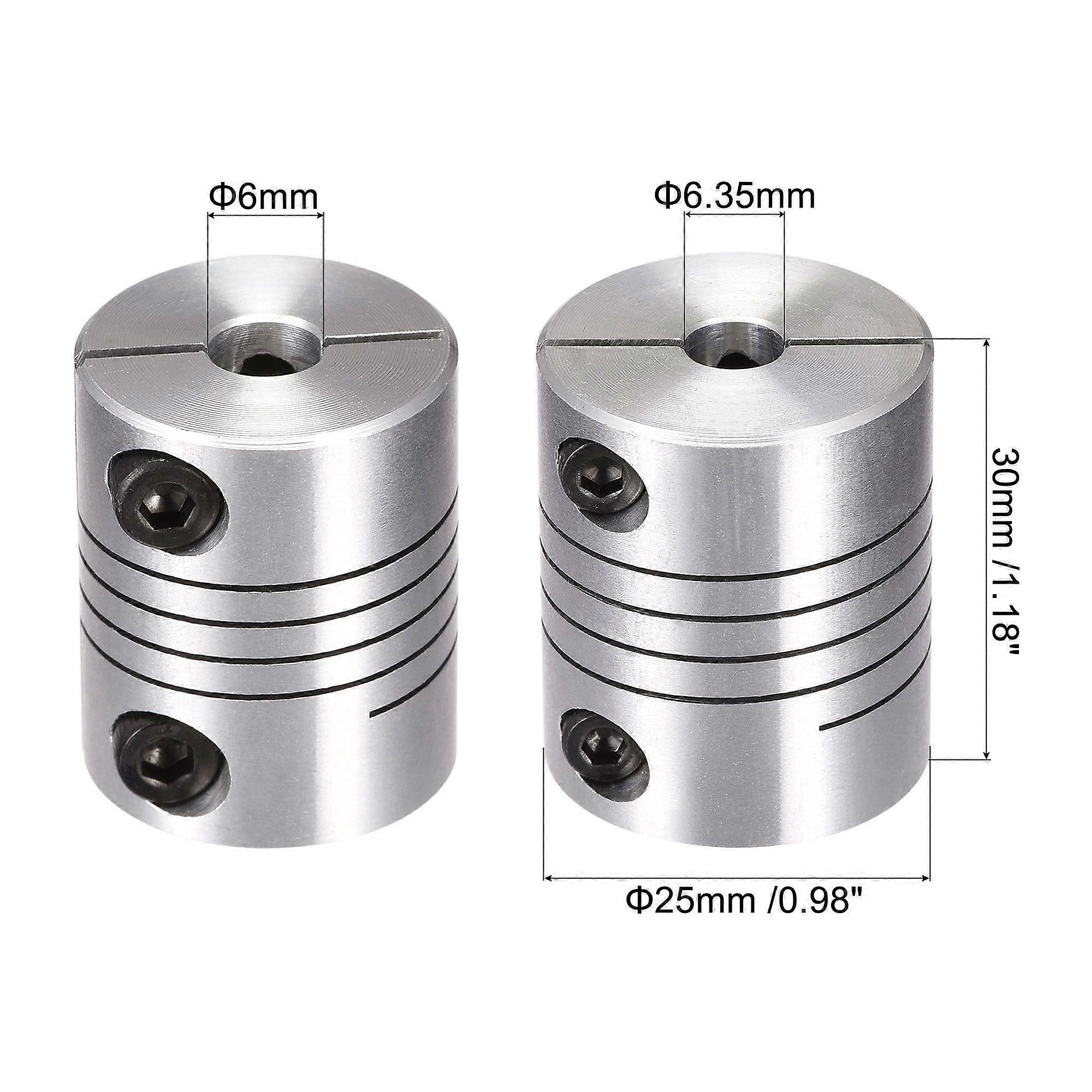 2PCS Motor Shaft 6mm to 6.35mm Helical Beam Coupler Coupling 25mm Dia 30mm Long