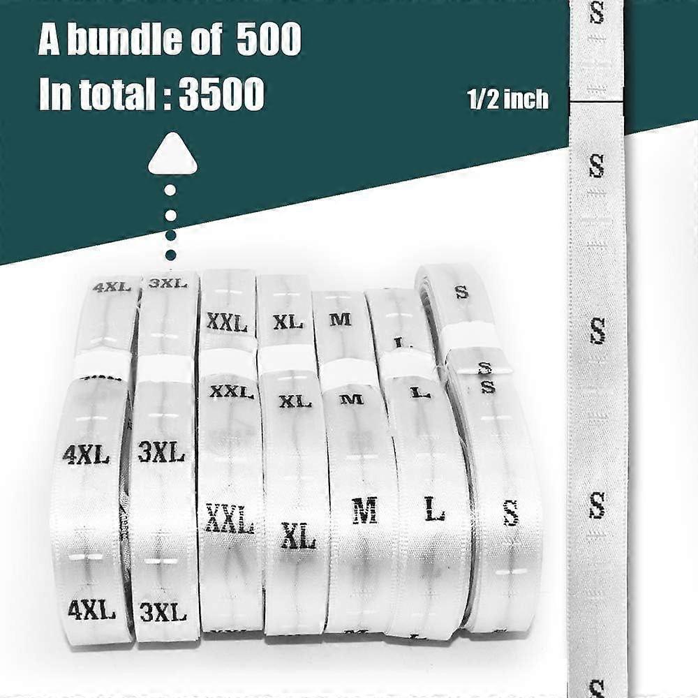 3500Pcs Clothes Size Label Tags Satin Ribbon Crafting Woven Polyester S-4XL Size, 500 Piec