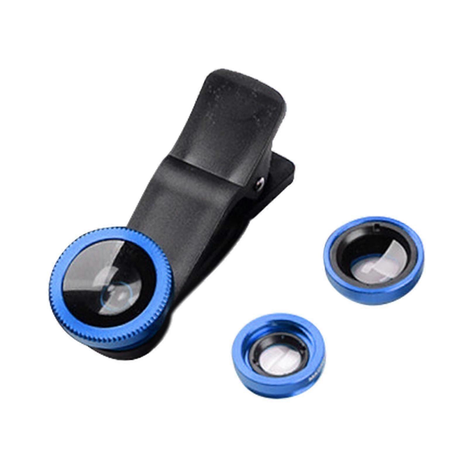 3-in-1 Phone Lens Clip: Fisheye, Wide Angle, Macro, Blue