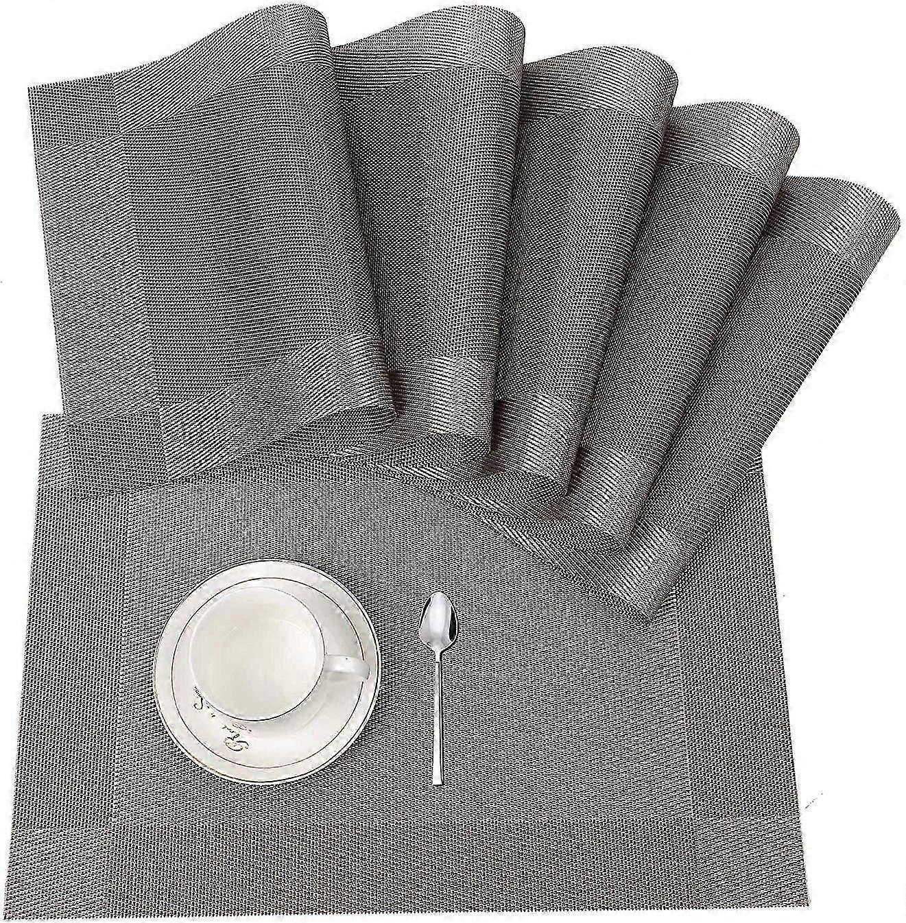 Non-Slip PVC Placemats Set of 6, Heat-Resistant & Washable for Home Restaurant Dining Table Silver