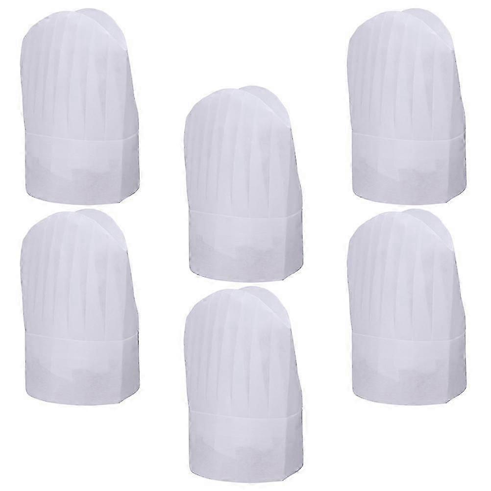 SQLX New 6Pcs Disposable Chef Hats Round Dome Cooking Headwear For Kitchen Staff White Fabric Ideal For Grilling And Baking