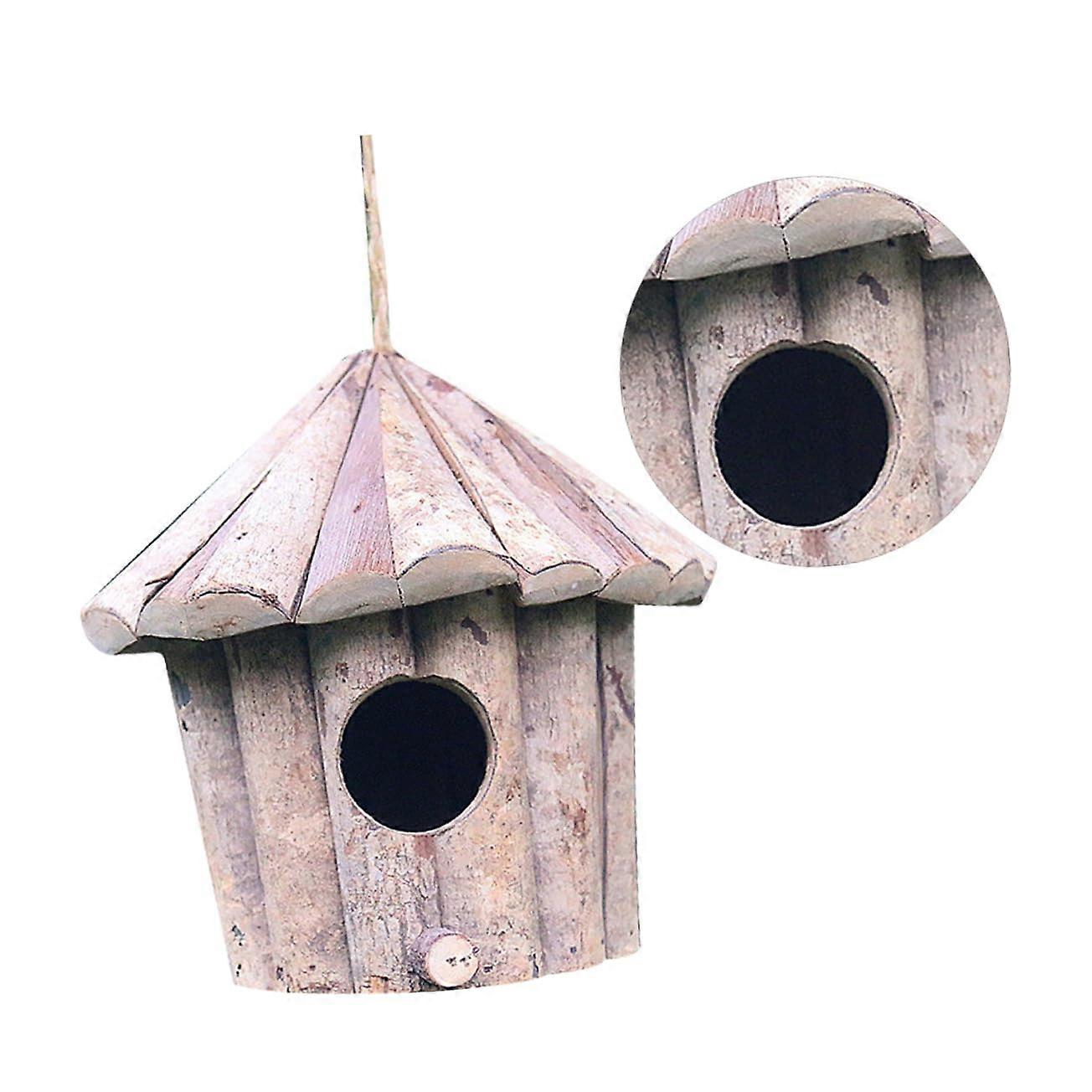 Handmade Wooden Birdhouse with Realistic Nest Design, Paintable Rustic Outdoor Patio Decor 16cm