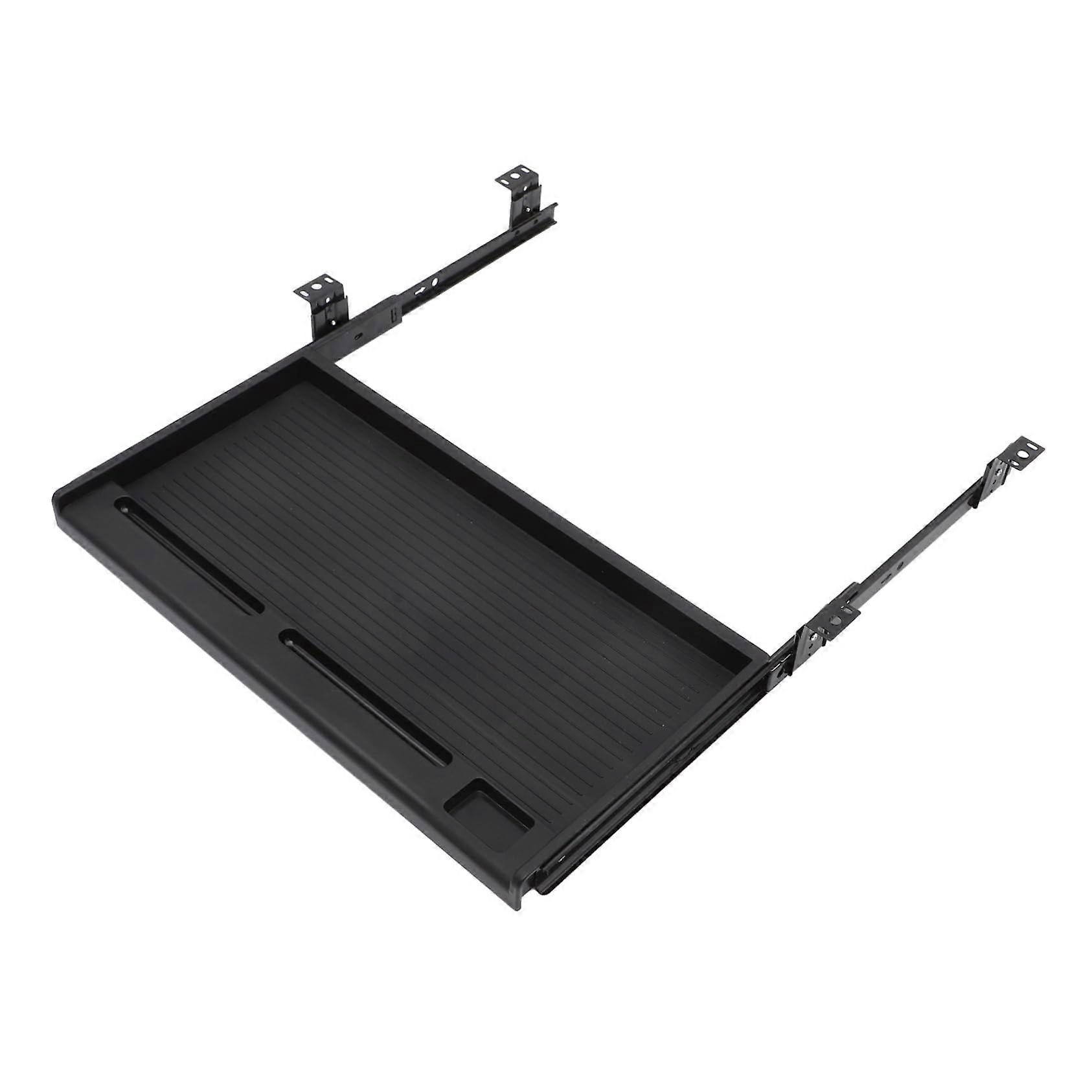 Color: Black Product overview A durable under desk keyboard tray and sliding storage solution designed to keep your workspace organized and comfortable. Constructed from wearresistant and sturdy materials with smooth sliding hardware, this tray offers reliable performance, easy access to your keyboard, and spacesaving storage under desks or dressers. Key benefits Improve ergonomics: Keeps the keyboard at a comfortable height and out of the way when not in use, reducing desk clutter and helping maintain a more organized workstation. Smooth, reliable operation: quality sliding runners make opening and closing the tray effortless for frequent use. Durable construction: Wearresistant materials and solid workmanship resist daily use and reduce the chance of breakage over time. Space saving: Sliding design fits under desks or dressers to up desktop area while providing ready access to input devices and small accessories. Simple mounting: Includes an under desk clamp option for secure attachment and flexible placement. Main features Color: Black for a neutral, professional appearance. Keyboard tray: Smoothsliding keyboard platform designed to hold standard keyboards and offer easy slidein and slideout operation. Under desk storage tray: Built from sturdy materials with careful workmanship to store small items and keep them organized beneath the desk. Monitor platform component: Made of wearresistant material suitable for use in conjunction with under desk storage configurations. Sliding dresser compatibility: Sliding type construction is lightweight, practical, and designed to resist breakage while maximizing usable space. Compatibility and function Works with most standard desks and dressers that can accommodate an underdesk mounting clamp or sliding tray. Suitable for use with standard keyboards and compact input devices. Designed for everyday office, home office, and craft spaces where under desk storage and keyboard access are needed. Use scenarios 1) Home office: Mount under a home desk to store the keyboard when not in use and keep the desktop clear for writing, drawing, or placing a laptop. 2) Craft workspace: Install beneath a craft table to hold small tools, materials, or a keyboard, keeping supplies organized and easily accessible. 3) Shared workstation or bedroom dresser: Add to a shared desk or dresser to create a concealed keyboard and storage area that saves surface space and keeps items protected. What makes it stand out Combination of wearresistant and sturdy materials for longlasting use. Smooth sliding mechanism for convenient daily operation. Practical, spacesaving design that adapts to desks and dressers without adding bulk. Installation notes Designed for clamp mounting under desks or dressers; ensure compatible mounting surface and sufficient clearance before installation. Check tray dimensions and desk clearance to confirm fit for your keyboard and workspace setup.