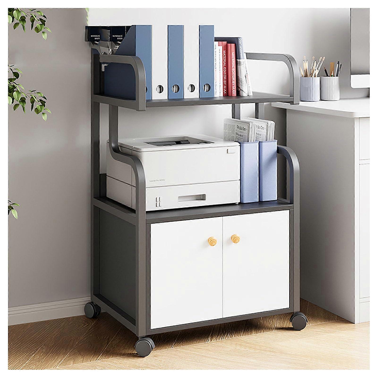 Industrial Printer Stand with Cabinet, Space Saving Media Storage for Home Office, Black
