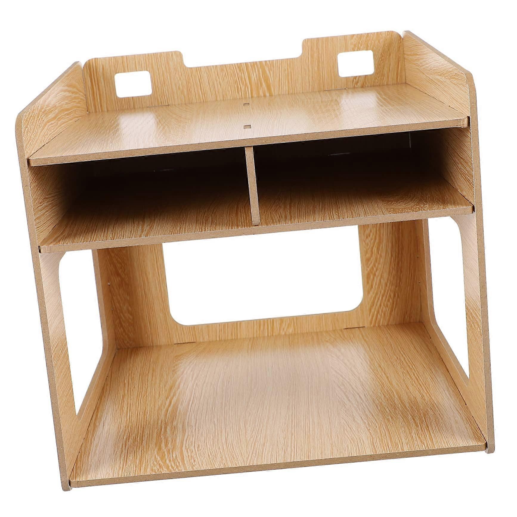 Light Walnut Wooden Printer Stand with Shelves, MultiLayer Desktop Organizer for Home Office
