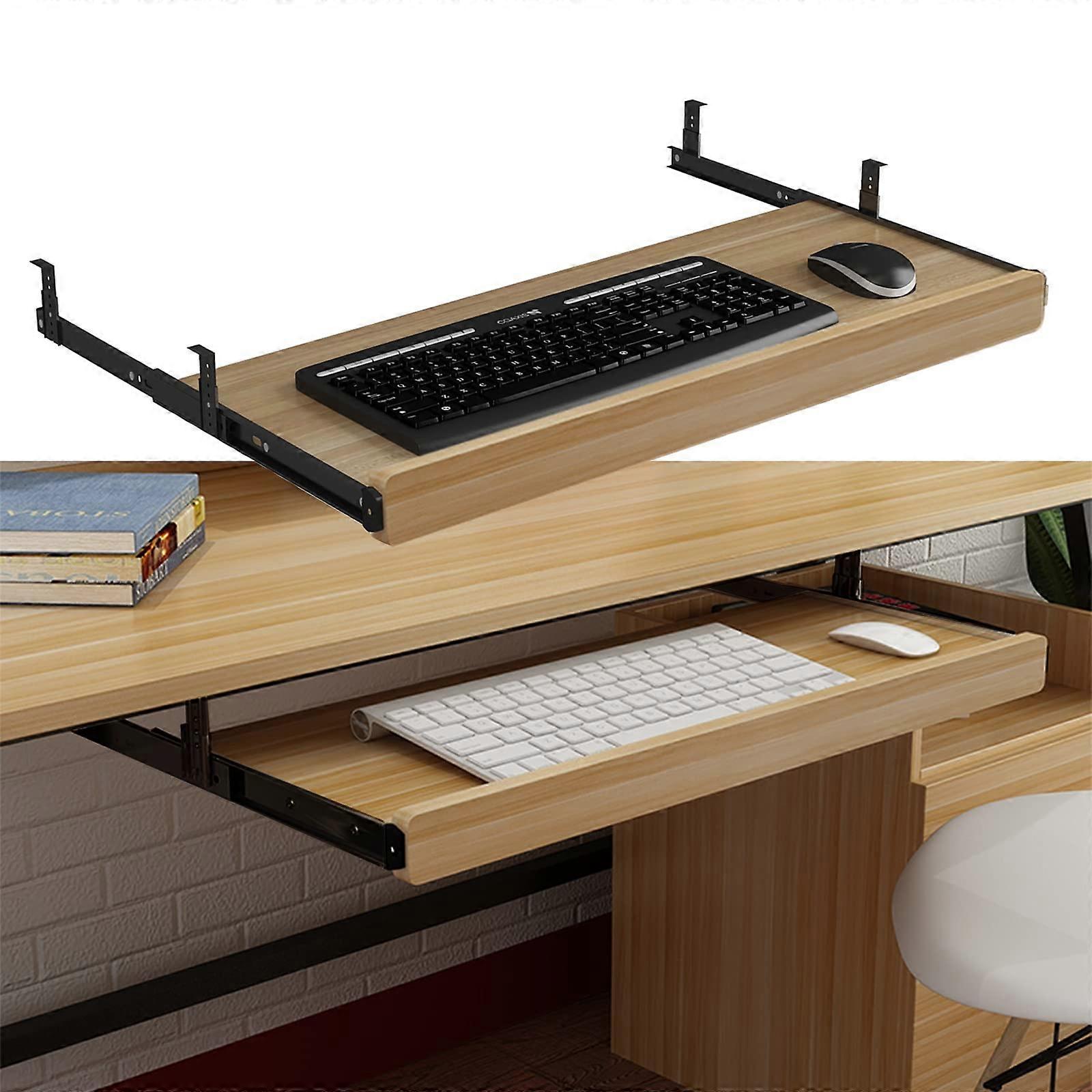 Under Desk Keyboard Tray Adjustable Wooden Sliding Drawer 70cm x 27cm with Smooth Ball Bearing Rails