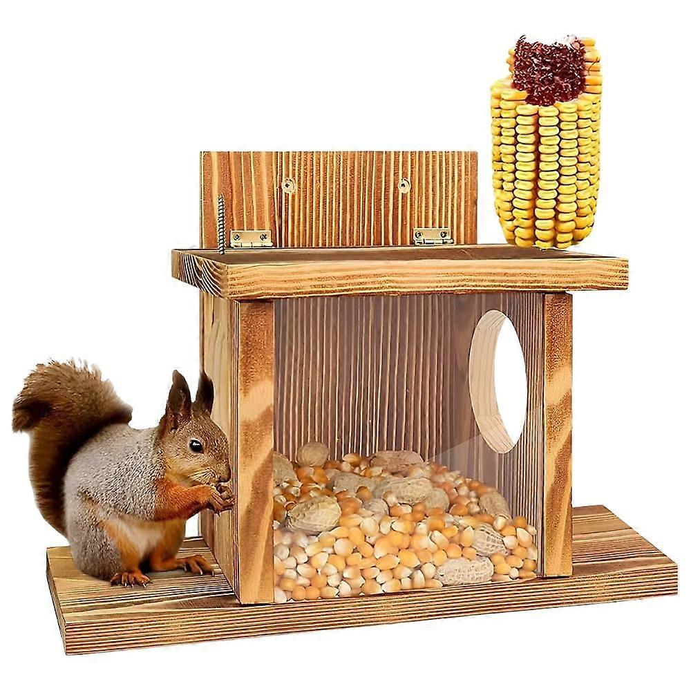 Weather‑Resistant Wood Squirrel Feeder with Lift‑Up Lid, Wall‑Mounted Outdoor Feeding Station