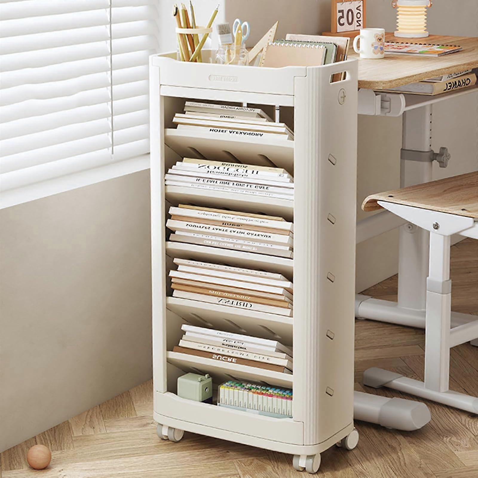 7Tier Slim Rolling Storage Cart Bookshelf with 360° Swivel Wheels and Stationery Organizer for Home Office