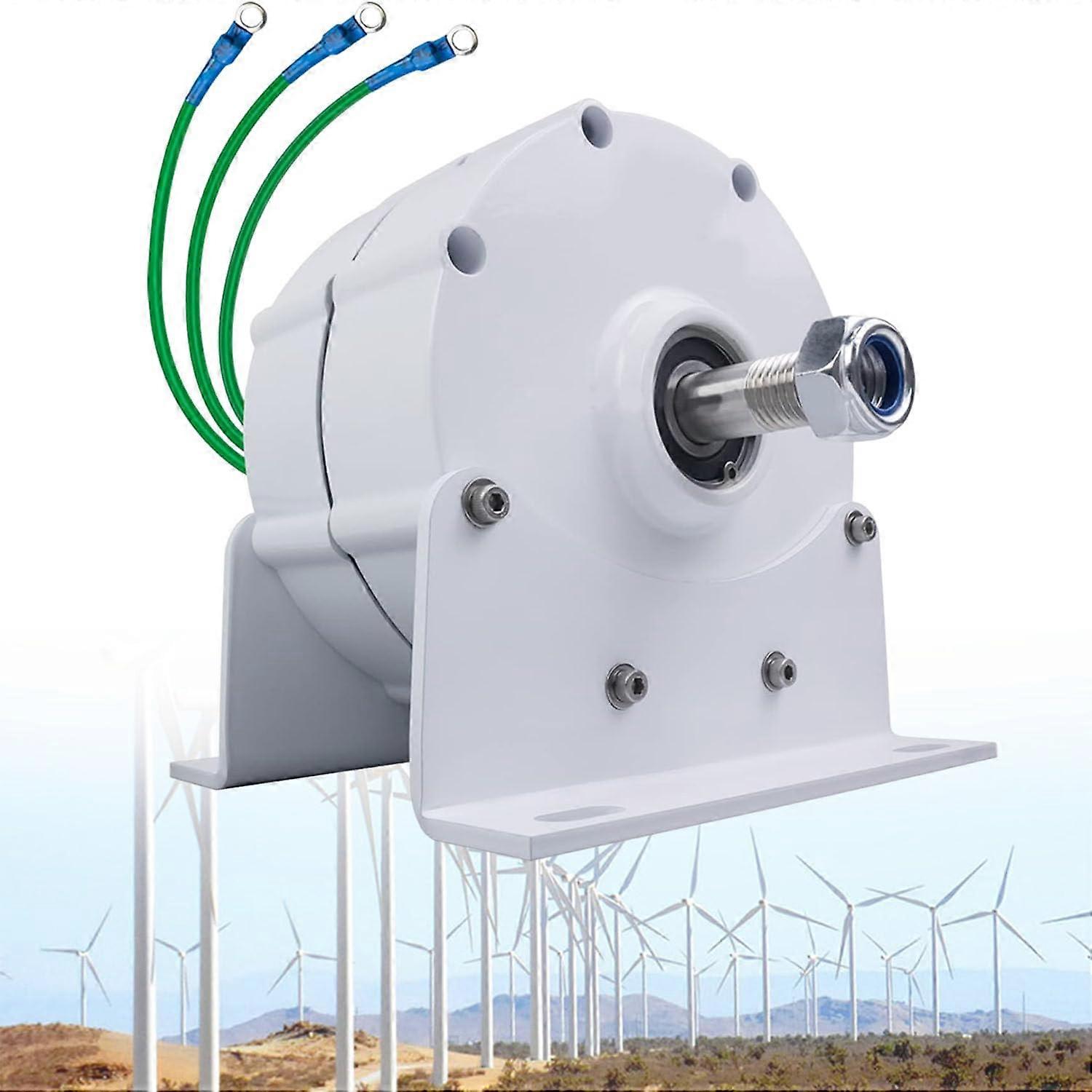 12V 24V 48V ThreePhase Permanent Magnet Generator Color: 48v Overview This threephase permanent magnet generator delivers directdrive electrical generation using neodymium iron boron magnets and grade pure copper windings. It requires no gears, starts at low speed with low torque, and is designed for stable, efficient operation in a range of smallscale power applications. Key benefits Efficient energy conversion: Permanent rare earth magnets and pure copper windings provide conversion efficiency of 90 percent or greater. Direct drive and low starting resistance: No gearbox required, allowing direct coupling to slowmoving prime movers and reducing mechanical complexity and maintenance. Reliable continuous operation: Aluminum alloy housing and robust construction support long service life and stable temperature performance. Flexible voltage options: Available rated voltages of 12V, 24V, and 48V to match common battery systems and DC applications. Main specifications Housing material: Aluminum alloy Permanent magnet material: Rare earth neodymium iron boron Winding: grade pure copper Rated voltage: 12V, 24V, 48V (optional) Speed: 600 r/m (rated) — some documentation references a rated speed of 500 rpm for typical operation Rated torque: 5.73 N m Efficiency: Greater than or equal to 90 percent Working temperature rise: Less than 70 degrees C Lifespan: 20 years or more under normal operating conditions Function and compatibility Produces threephase AC that can be rectified for DC battery charging or used through appropriate inverters for AC loads. Designed to work with lowspeed prime movers, such as small wind turbines or water turbines, without requiring gear reduction. Voltage options make it compatible with common DC battery banks and control systems for offgrid and backup applications. Comes with a rectifier for DC output and a motor base for mounting. What is included 1 motor with base 1 rectifier Practical applications Small wind turbines: Directdrive coupling to turbine rotors for residential or remote power systems. Microhydro systems: Lowspeed water turbine applications where stable, continuous output is required. Offgrid and backup power: Charging 12V, 24V, or 48V battery systems for lighting, communications, pumps, and monitoring equipment. DIY and experimental projects: Suitable for hobbyist generator builds, research prototypes, and custom power solutions that require a durable, lowspeed generator. Why choose this model Solid materials and construction for longterm reliability. efficiency and low starting torque for effective performance with slow, variablespeed prime movers. Simple installation and maintenance thanks to directdrive design and included base and rectifier. Notes for installation and use Ensure correct voltage selection for your battery bank or load before installation. Use appropriate controllers, charge regulators, and protection devices when charging batteries or connecting to loads. Follow proper mounting and alignment procedures to minimize mechanical wear and maintain performance.