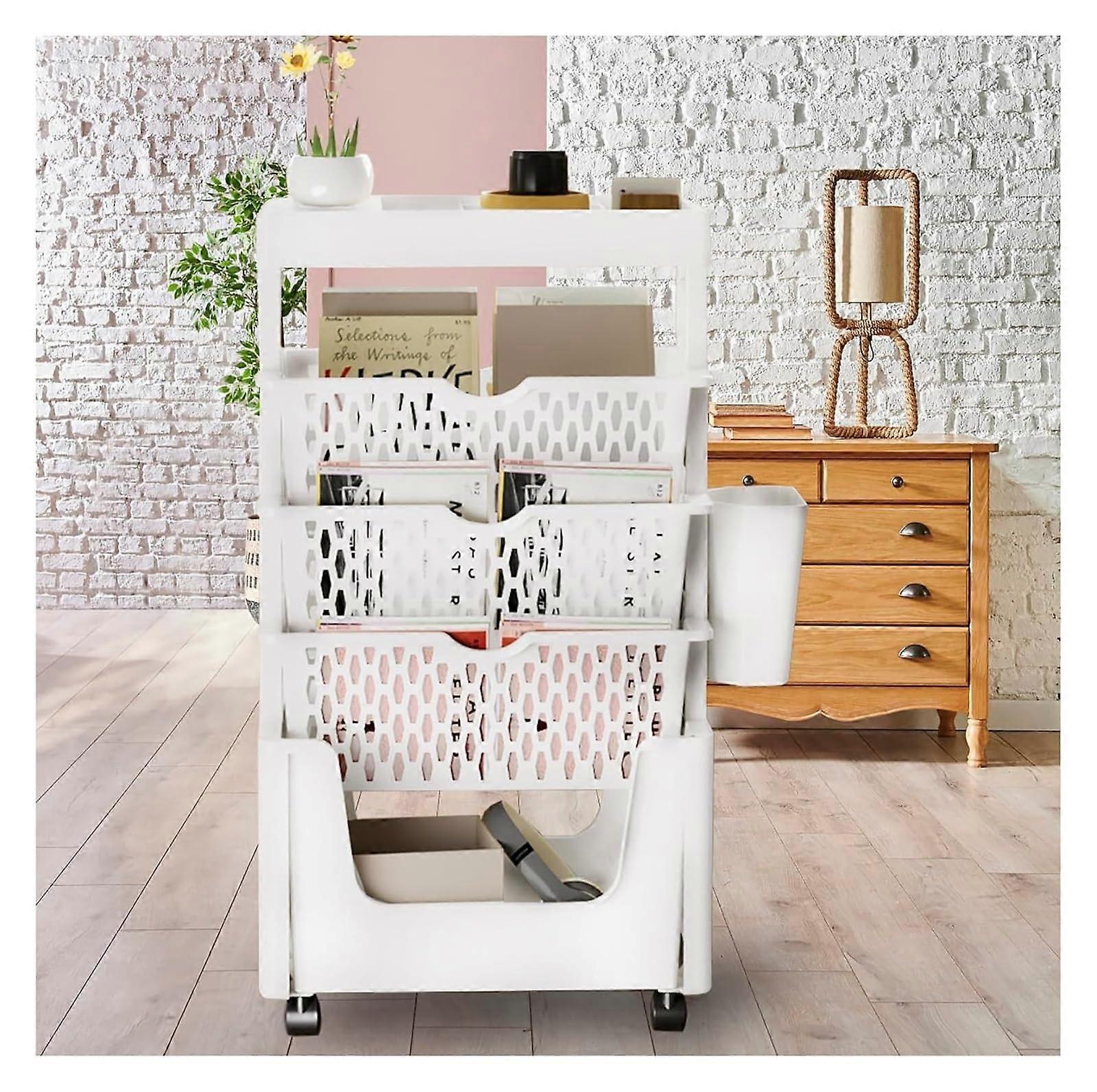 Rolling Bookshelf with Wheels, 5 Tier SpaceSaving Book Rack Organizer for Home Office, White