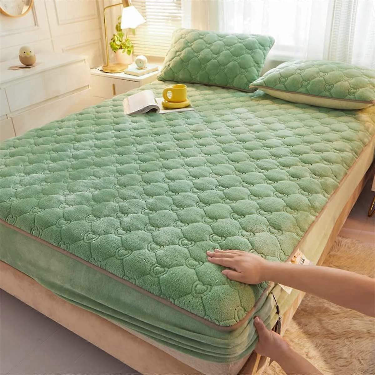 Fitted Sheet Queen Size Deep Pocket Velvet Mattress Cover with ThreeLayer Warmth and Elastic Fit Green