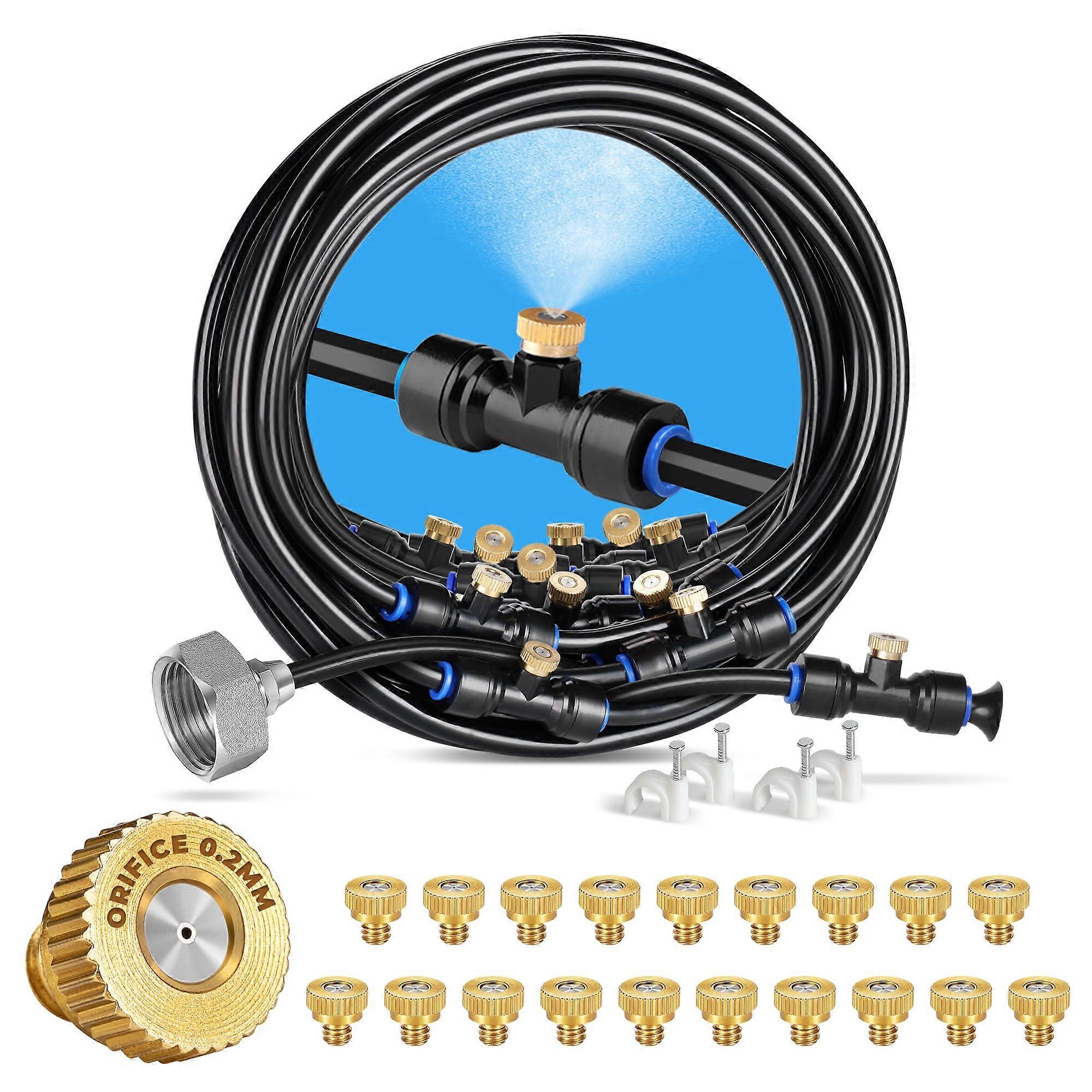 75FT Outdoor Misting System with RustResistant Brass Nozzles, Patio Cooling Kit for Garden and Greenhouse