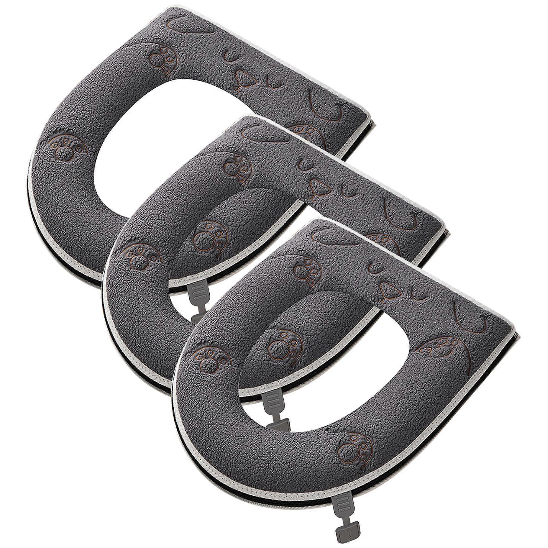 Warm Toilet Seat Cover 3PCS Soft Plush Washable Thick Cushion with Zipper Handle Fits Most Toilets